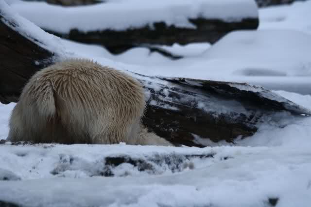 Die berühmte Bärenrunde, die ich sonst gehe, gibt ja zurzeit nicht viel her. Die Eisbärinnen sind in ihren Höhlen, Lars ist nicht mehr da. Als ich am Tor zum Bärenhof vorbei ging, dachte ich an Herrn Dörflein. Er hat ja Kälte geliebt. Sicher hätte es ihm im Zoo bei diesem Wetter besonders gefallen…