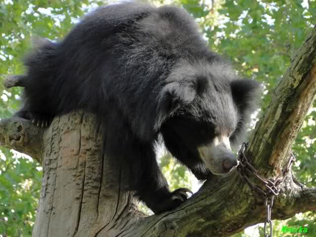 Devi zeigte uns auch heute wieder ihre Kletterkünste. Sie versuchte oben am Baum, die Kette zu lösen.