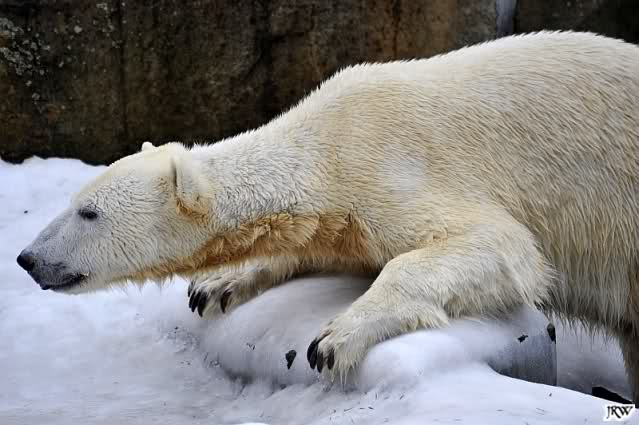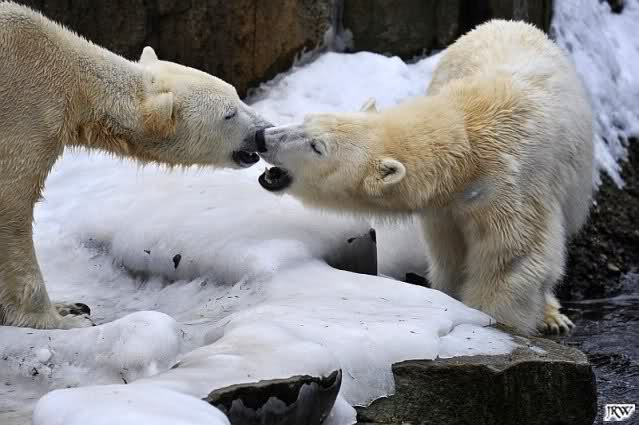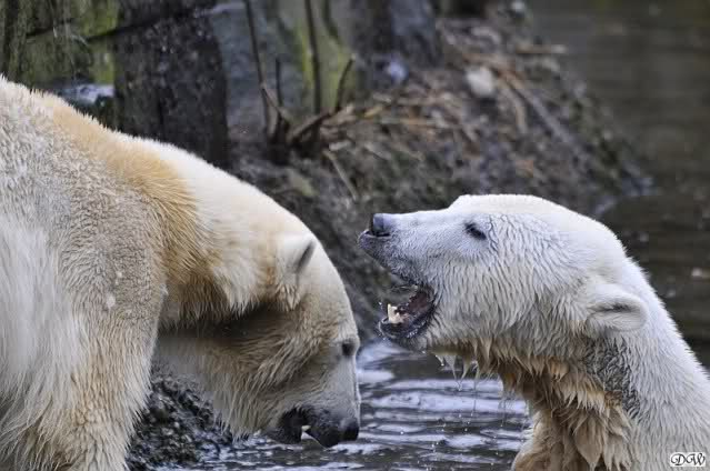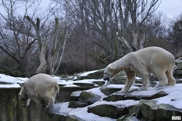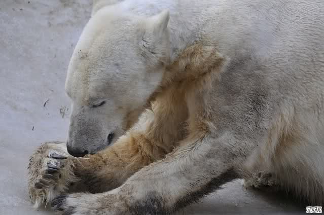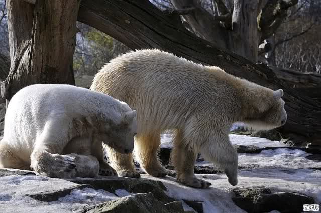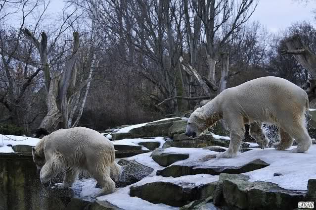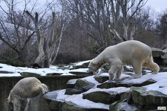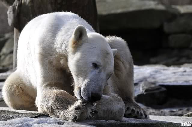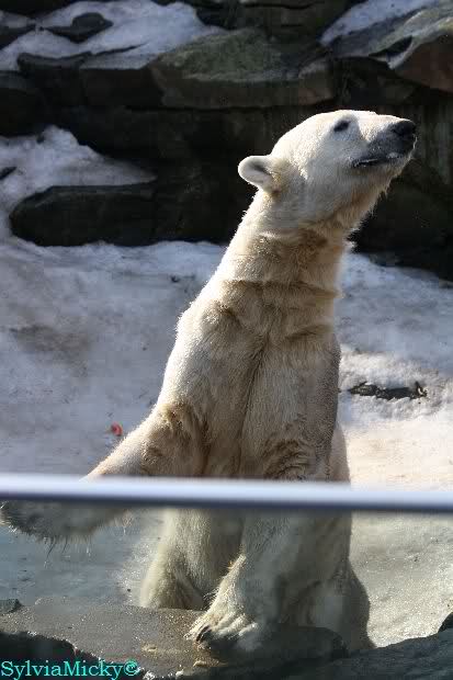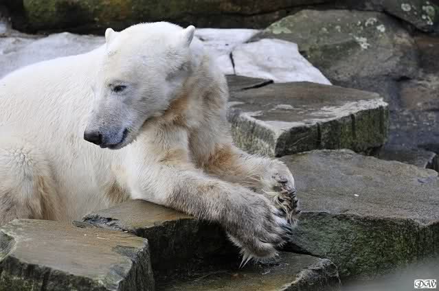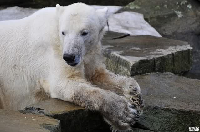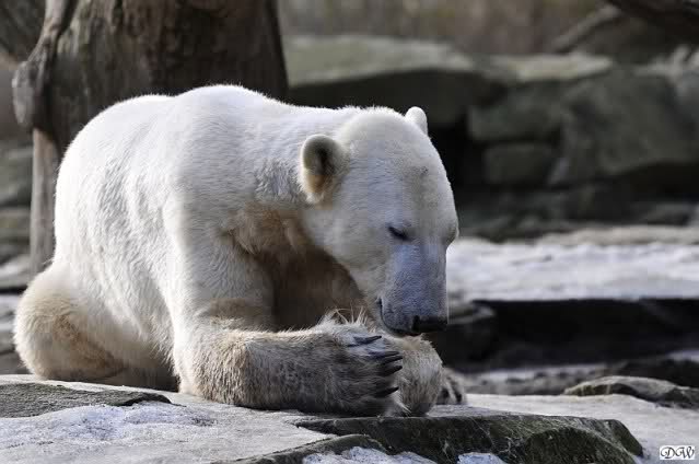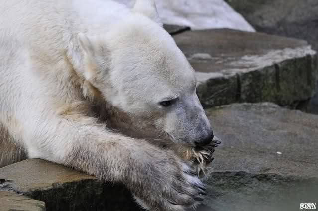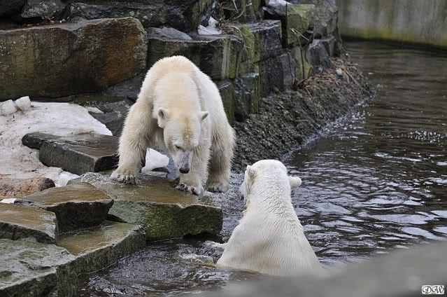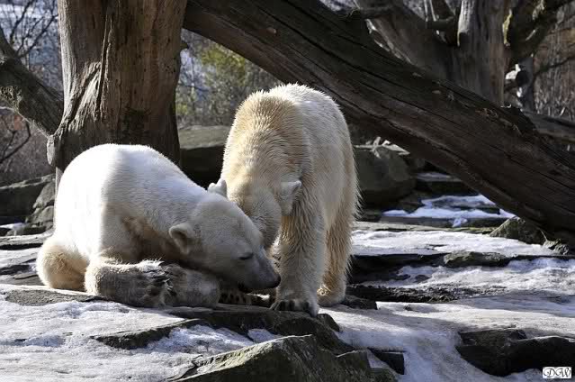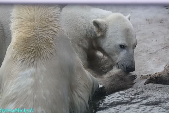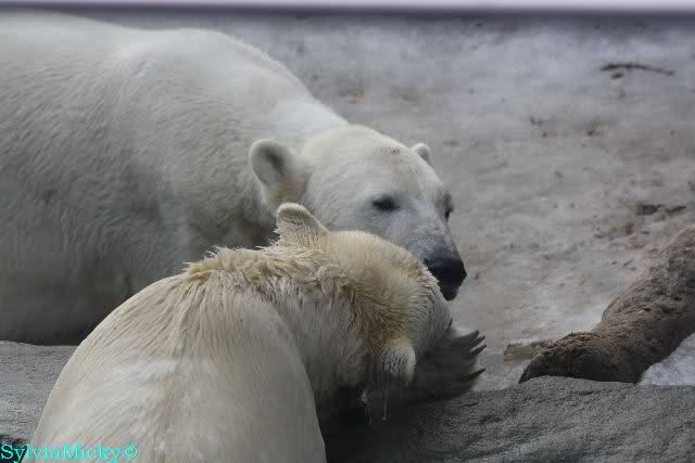 Bei Knut und Gianna war heute Nachmittag eher gedämpfte Stimmung. Knut beschäftigte sich sehr viel mit seinen Tatzen. Er leckte und leckte sie ab, manchmal nuckerte er auch. Er tat das eigentlich relativ selten in der letzten Zeit. Trotzdem ging der Blick des Öfteren in Richtung Gianna. Sie tat ihm auch den Gefallen und kam zu ihm. Nur kurz, aber sie kam. Sie lief oft über die Anlage und war dann froh wieder Jürgen-TV sehen zu können. Vielleicht hat Knut ja Spring Fever.