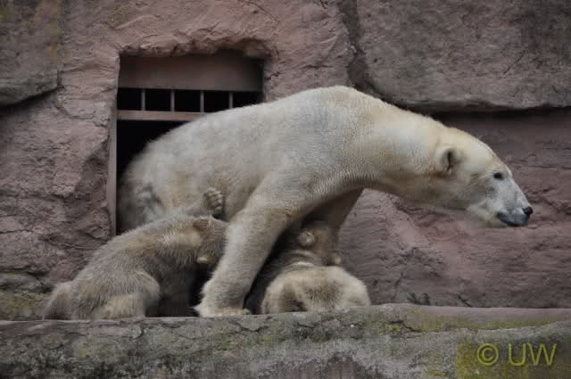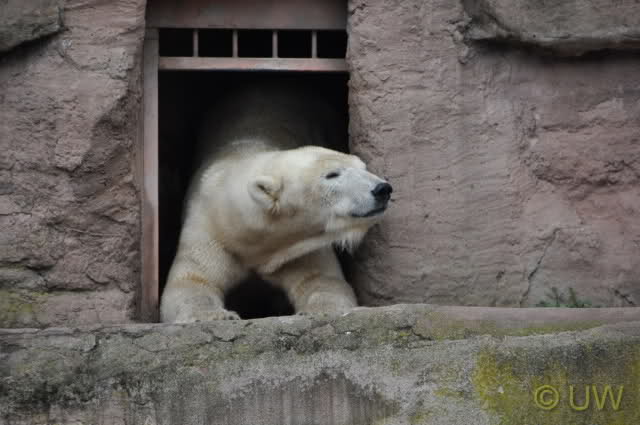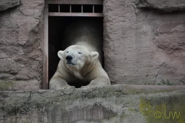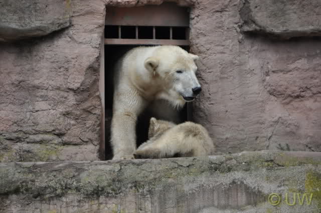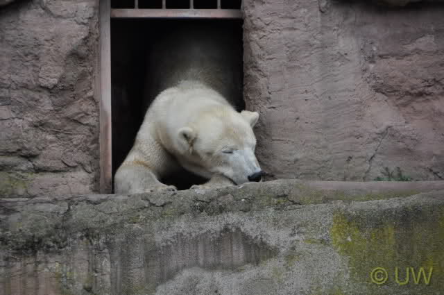 ... man hatte den Eindruck, dass Vera ziemlich müde sei, sich aber nicht zu Schlafen getraute. Sie döste im Höhleneingang, und zwar so, dass kein neugieriger kleiner Eisbär heraus konnte