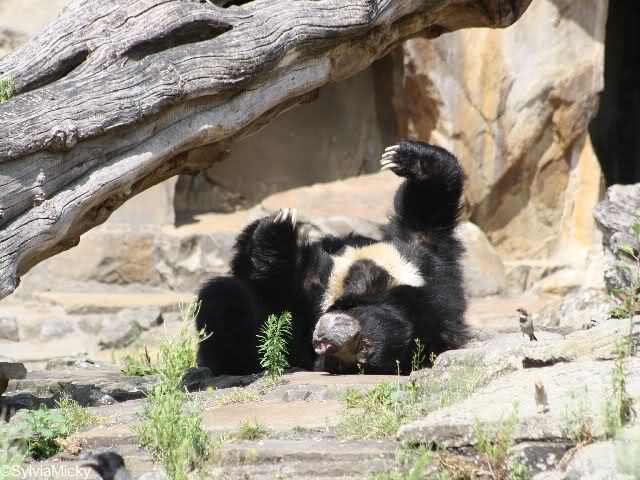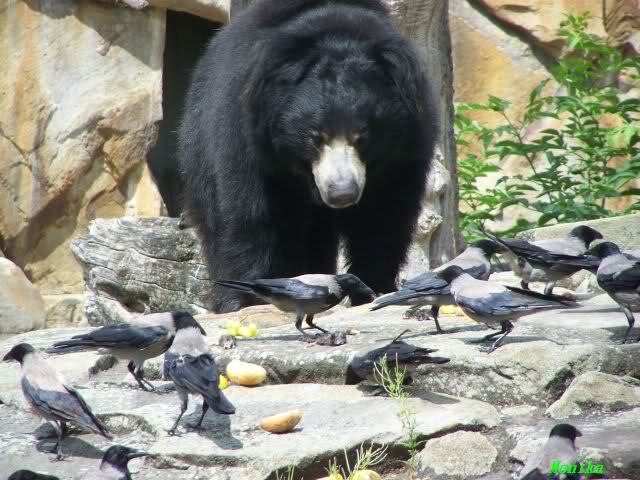 Der Kragenbär mußte heute sein Futter mit vielen Krähen teilen.