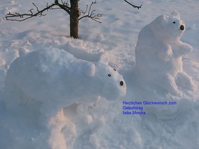 Dear Monika! My best birthday wishes to you. As you can see Knut and Gianna have baked a cake for you. Although, there's a little risk there won't be so much left of it after their thorough quality control....I wish you a wonderful day with lots of joy and happiness!