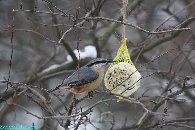 Ein Kleiber am Gehege von Knut. Es kommen immer mehr Vögel wegen der Kälte und der so lange geschlossenen Schneedecke nach Berlin.
