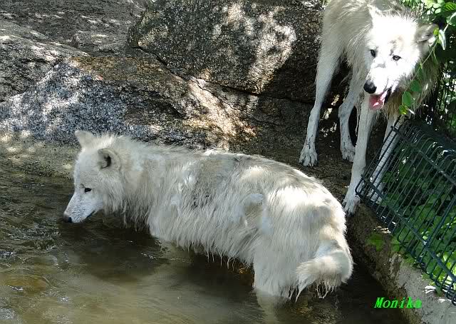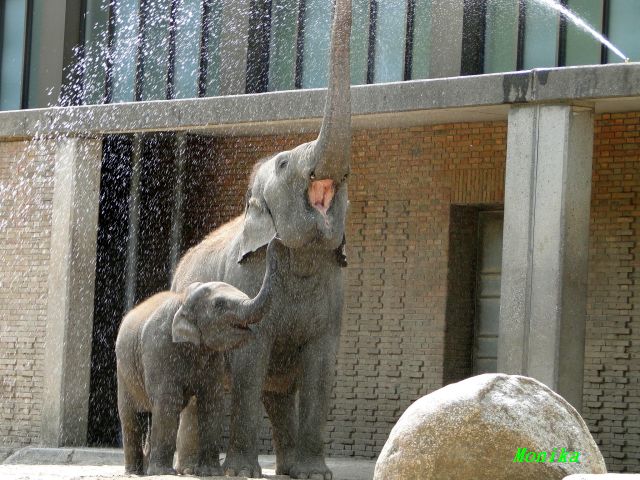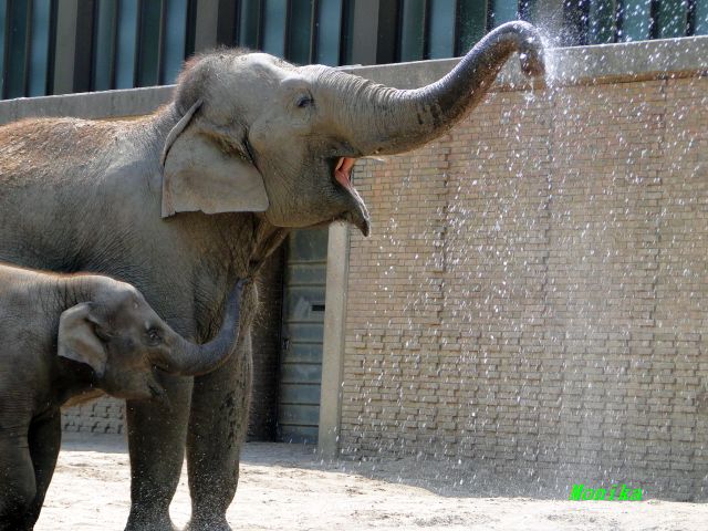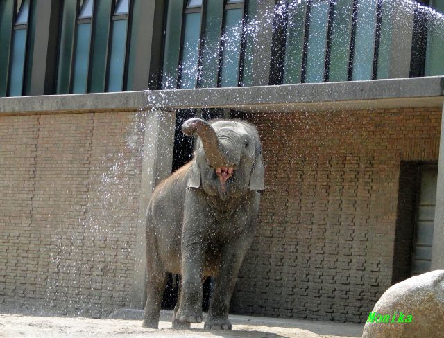 Monika, Tiere aus Afrika bekommen bei diesem schwülen Wetter eine Dusche. Wie schön.