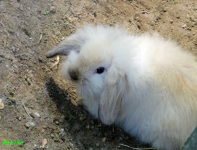 süßer flauschiger Nachwuchs bei den Kaninchen (Angorakaninchen?). Ich habe fünf Kleine gezählt.