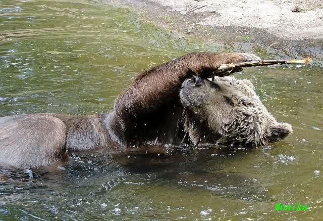 Petzi im Wasser ist lustig. Maika sieht gut aus. Was ist mit Jurgen los?