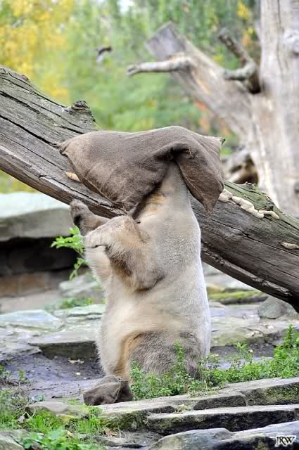 ein wenig später wachte Knut auf und spielte mit dem großen Kissen