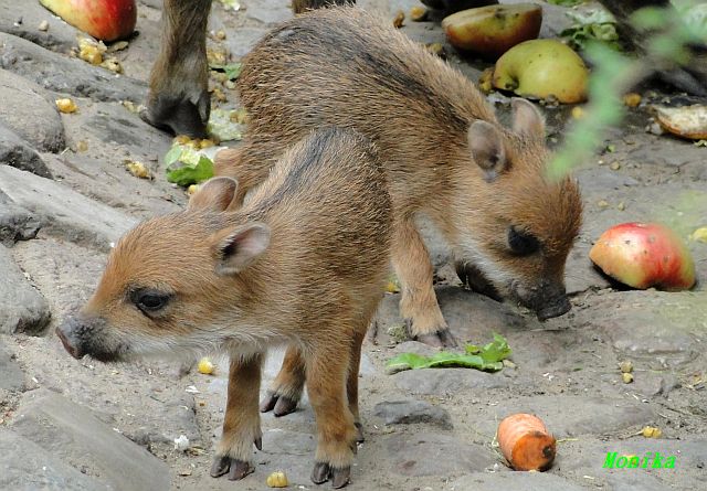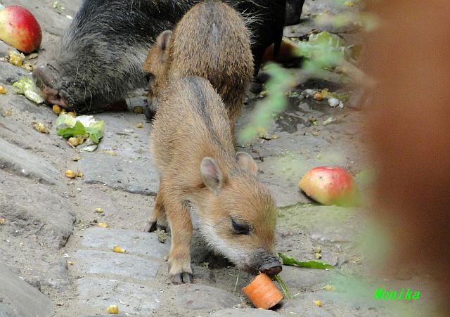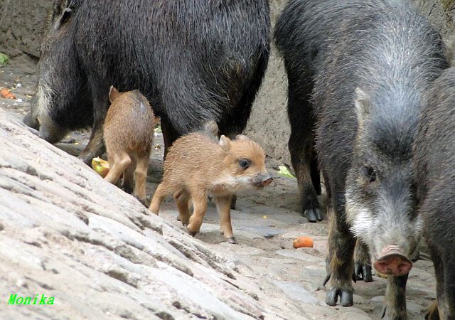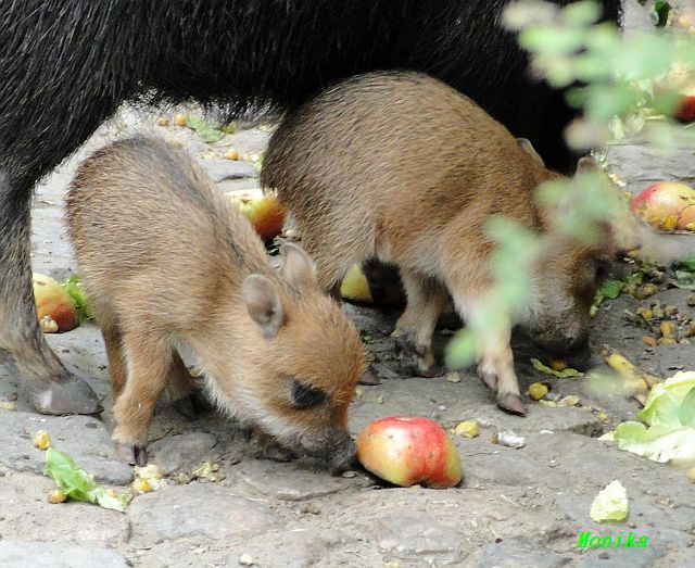 Die beiden Minis unter den Pekaris knabbern schon Obst und Gemüse