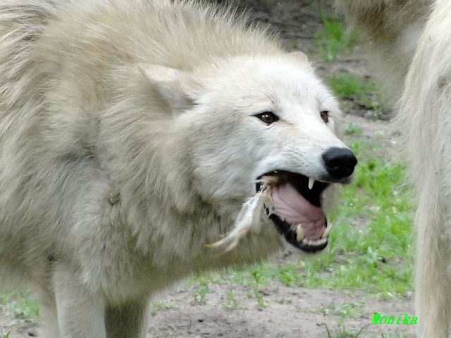 Bei den Wölfen gab es gestern Hähnchen, aber nicht so zubereitet wie wir es gerne mögen. So hatte dieser Wolf noch einige Probleme mit dem Hühner-Füßchen.