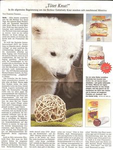 Wo Du recht hast, hast Du recht, lieber Hartmuth! Die Presse und all die, wie z.B. "die Kreativen der Hamburger Werbeagentur" (wer soll das denn sein???)vertun mehr als eine große Chance, die sie gerade durch Knut gehabt hätten (und sicher noch haben würden)um viele Menschen wach zu rütteln in Sachen Klima und Umwelt.
