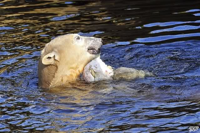 Ich glaube, Knut hat als einiges Tier im Zoo so viel Spielzeug. Über zwei Jahre verzaubert er 1000e Besucher damit, und sie sind begeistert von dem spielenden Bärchen. Knut zeigt den Besuchern was Zootiere brauchen und sie begreifen es, da sie es sehen. Nur seine Aliens, die ET's, die ihm doch nur das Beste wünschen, begreifen das nicht. Aber, warum machen sie dann so viele Bilder vom spielenden Knut?