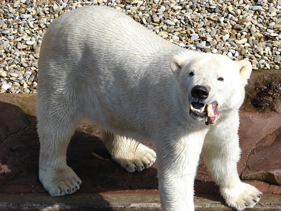 Natürlich habe ich auch Yvonne besucht. Sie schien mir heute nicht so sehr gut drauf zu sein. Möglicherweise hat sie das Wetter in den alten Knochen gespürt, mir ging es heute nämlich genauso *g* Sie hat immer wieder ein Vorderbein gehoben, als wolle sie es entlasten, das kenne ich von ihr eigentlich nicht. Als ich sie da so einsam und nicht sehr glücklich wirkend in ihrem Gehege gesehen habe, habe ich mir gedacht, dass es schon gut ist, wenn sie wieder Gesellschaft bekommt und in Rostock auch einen bequemerem Weg ins Gehege hat, so leid es mir auch tut, wenn sie geht. Sorge macht mir zwar nach wie vor, wie sie den Umzug verkraften wird, aber Dauerzustand kann das hier einfach nicht sein.
