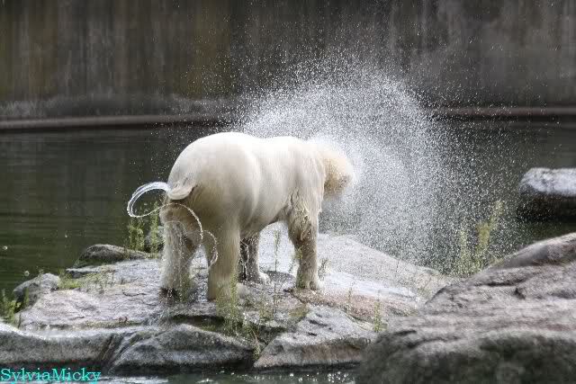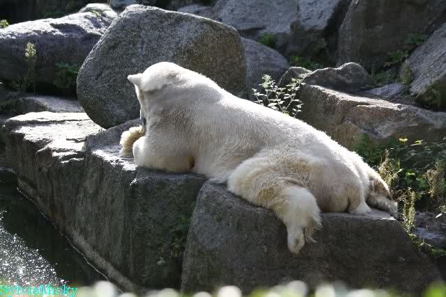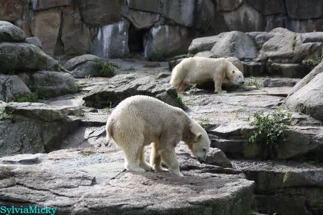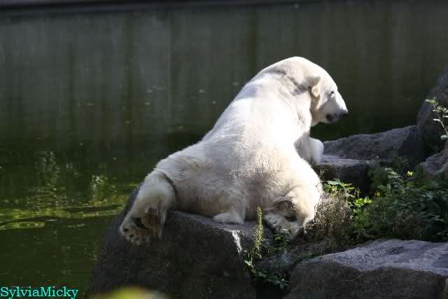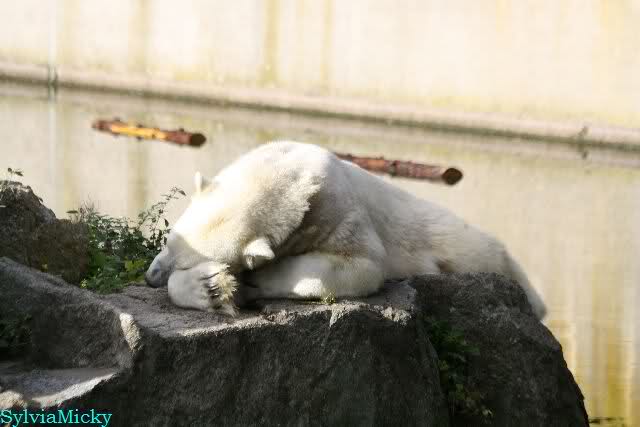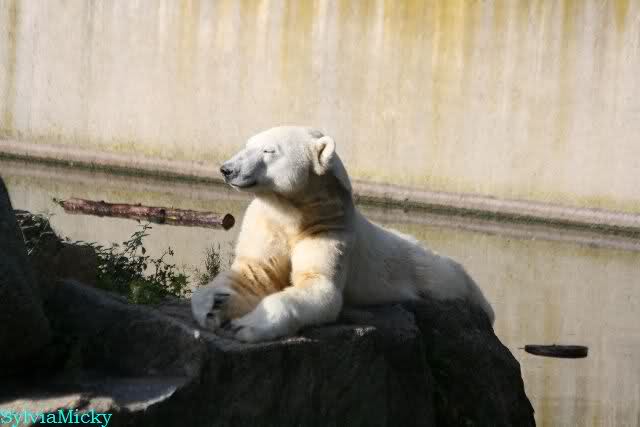 Knut lag immer noch rechts auf dem äußersten Felsen der Anlage, räkelte sich. Tosca links, auch sie räkelte sich kurz.