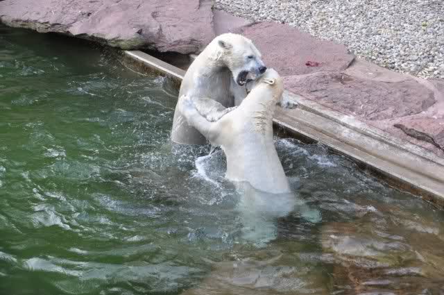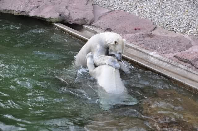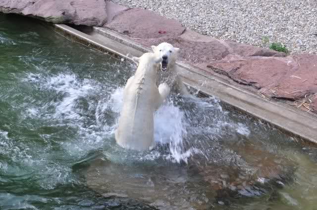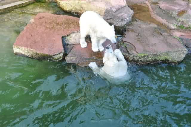 tolle Bilder habt Ihr uns wieder mitgebracht. Wir hoffen sehr, dass wir in Kürze Ähnliches bei Knut und Gianna sehen können. Allerdings wäre es in Berlin noch so viel attraktiver - wir haben so wunderschönes grünes und vitaminreiches Wasser, das den Bären bis an's Knie reicht.