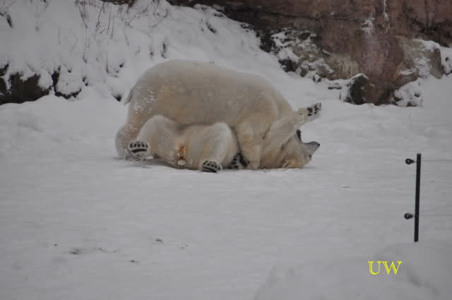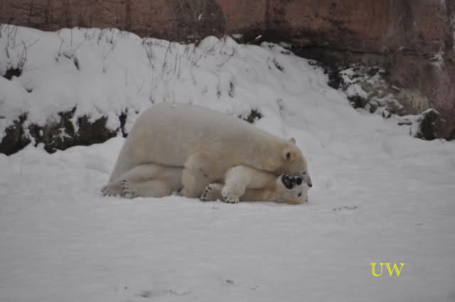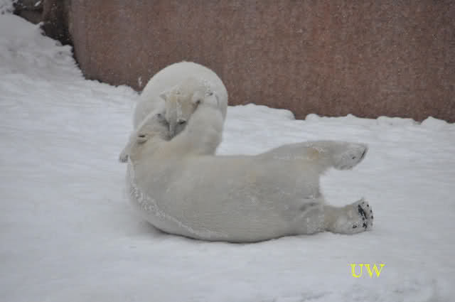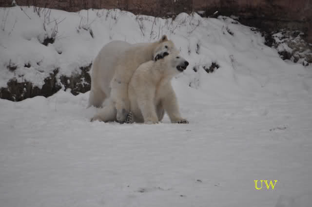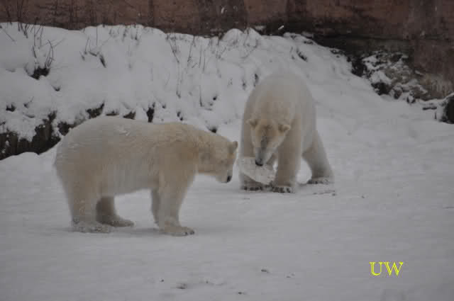 Es schneite zeitweilig ziemlich stark, die beiden fühlten sich im Schnee ziemlich wohl und spielten miteinander.