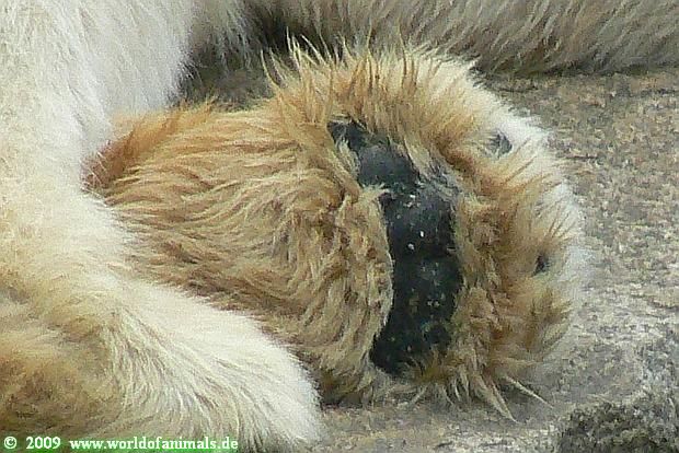... dann aber schnell zu Mama Sutra, um im vertrauten Pelz und Geruch Schutz suchend, die vielen Menschen neugierig zu betrachten ...