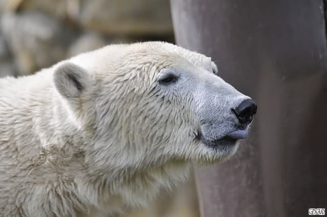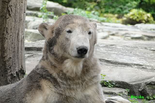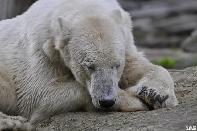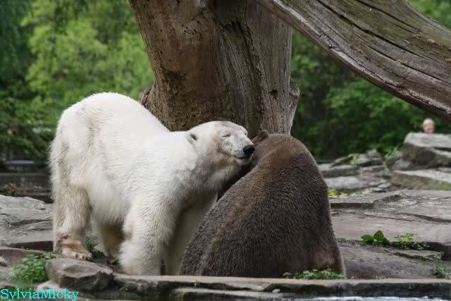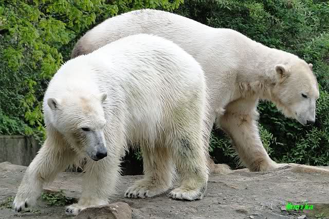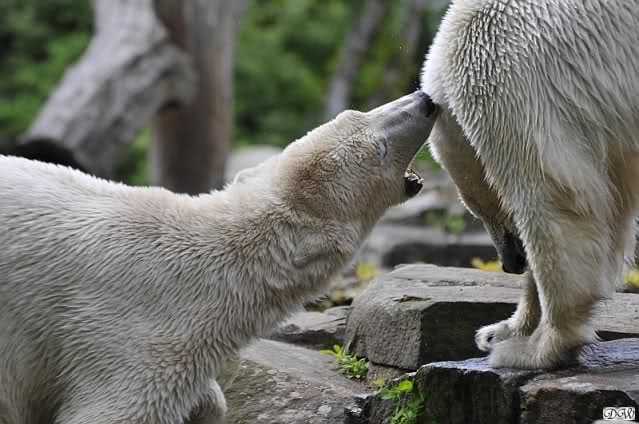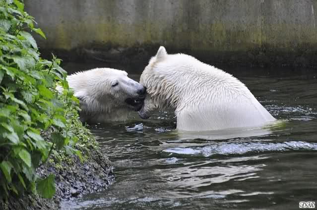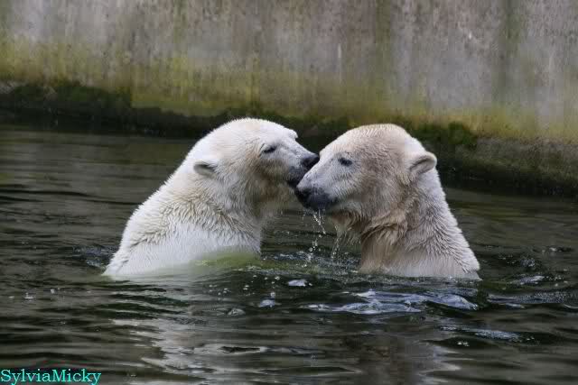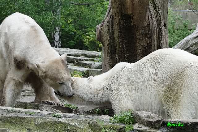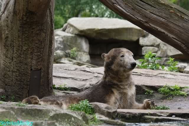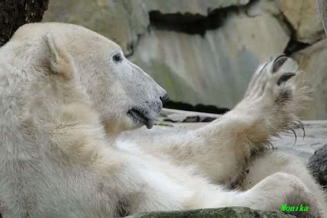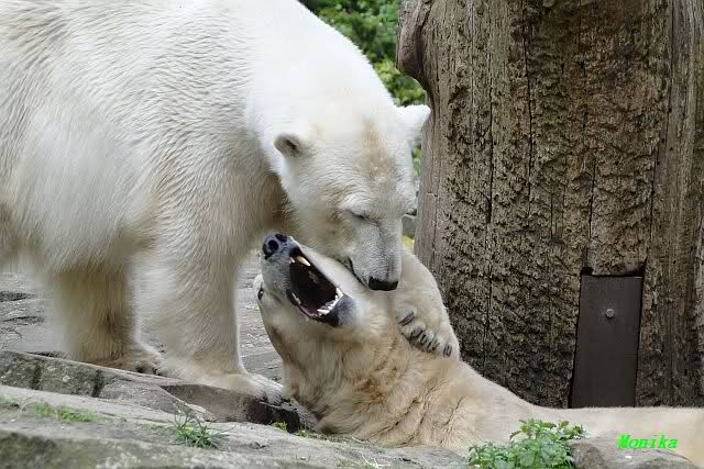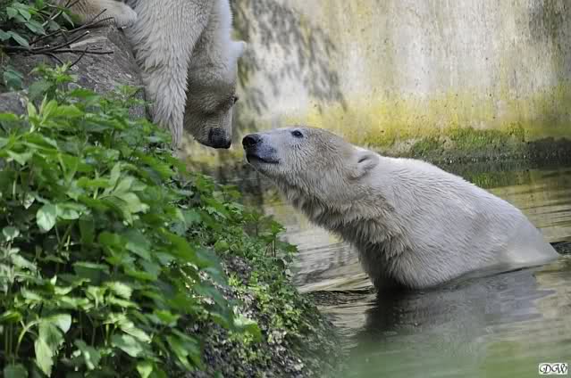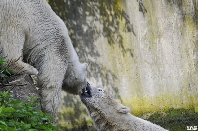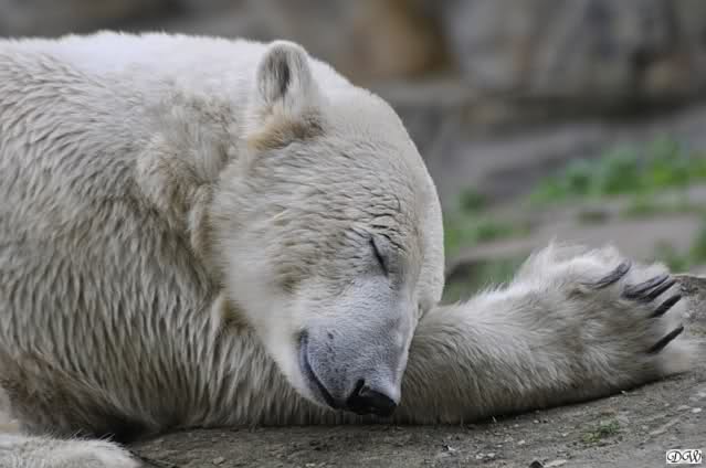 Heute Vormittag schlief Knut und Gianna lief. Sie ging mehrmals sehr vorsichtig zu ihm hin aber Knut zeigte Tapirlippe oder zog sich zurück. Merkwürdig dies Verhalten in letzter Zeit. Nur im Wasser zeigt er keine Ängstlichkeit.