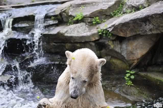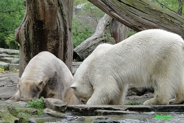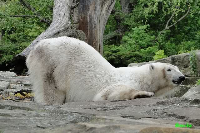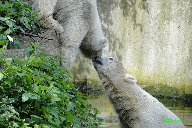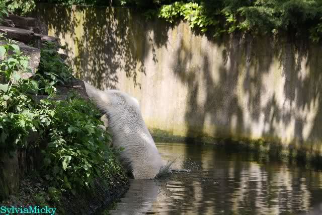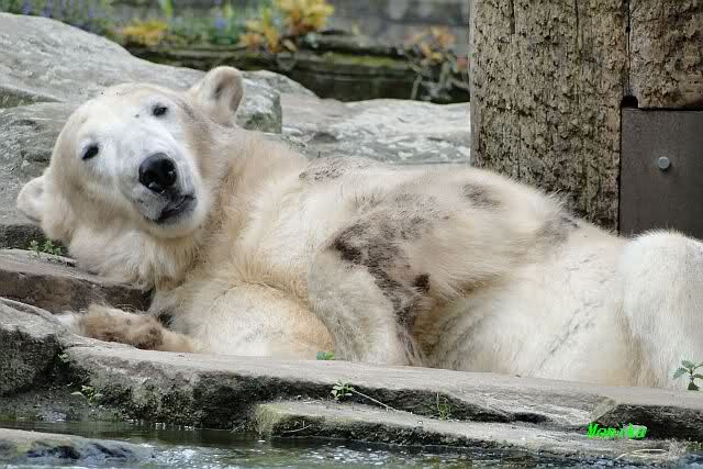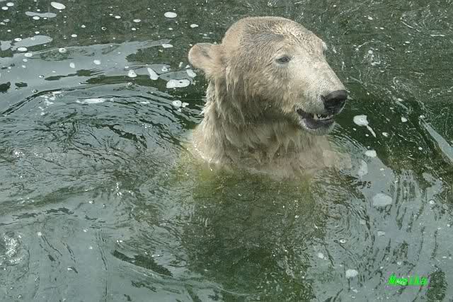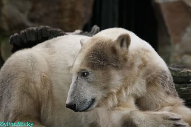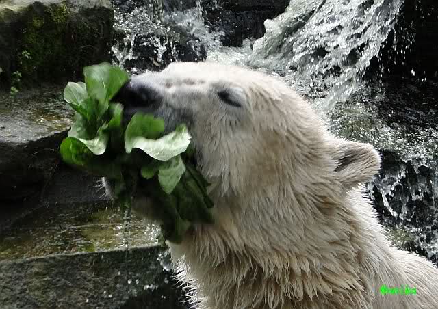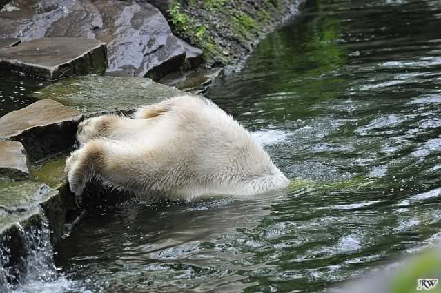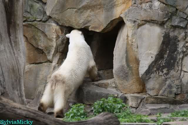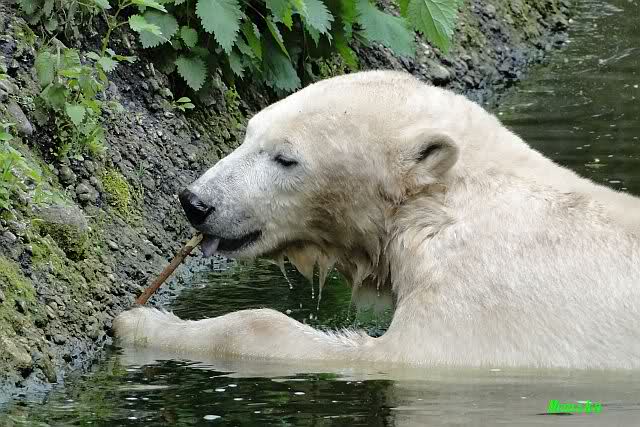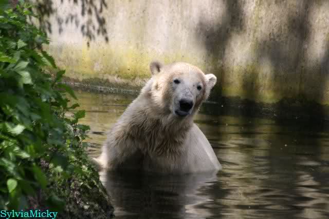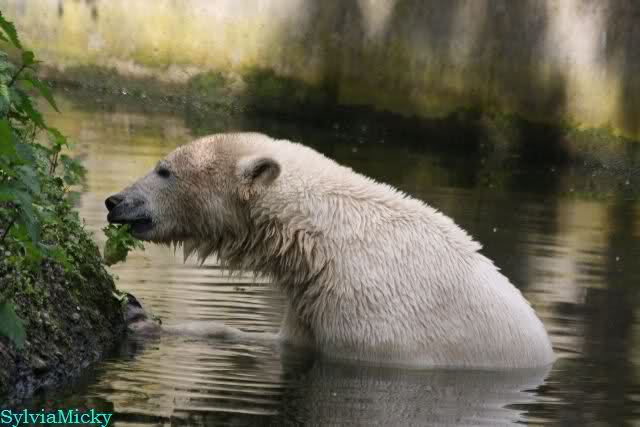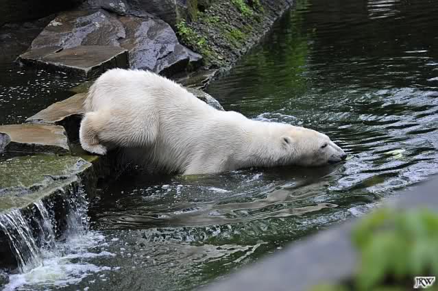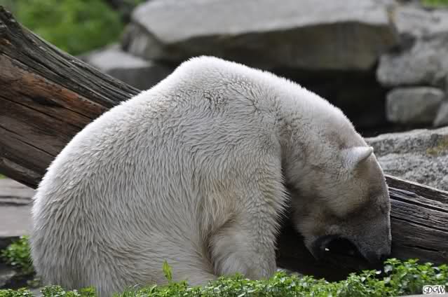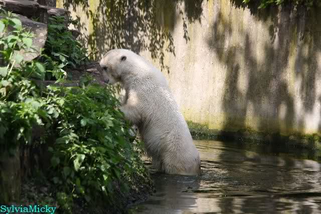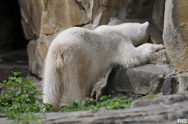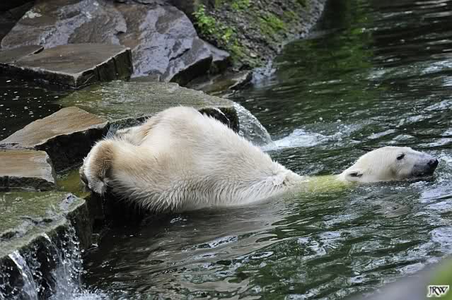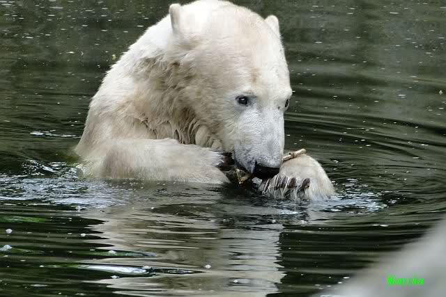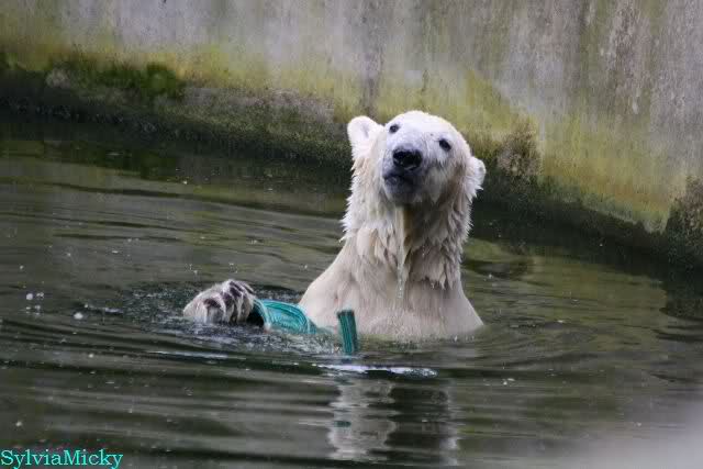 Nach der Fütterung ging es ähnlich weiter wie heute Vormittag; nur das Knut wieder die Farbe eines Eisbären angenommen hat.