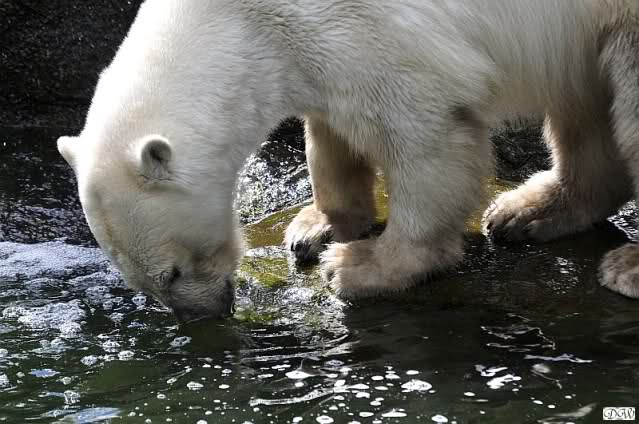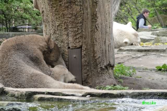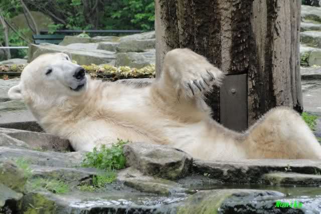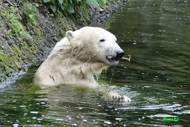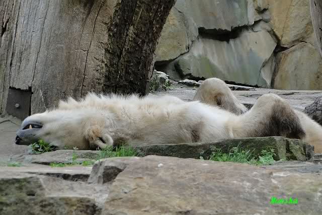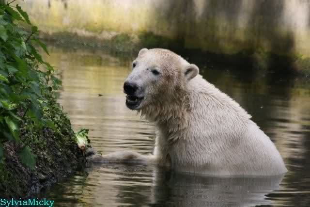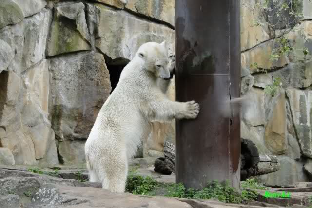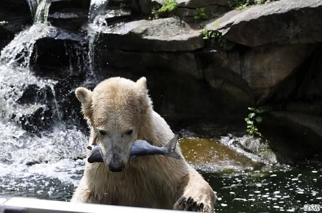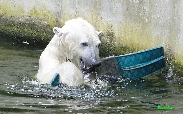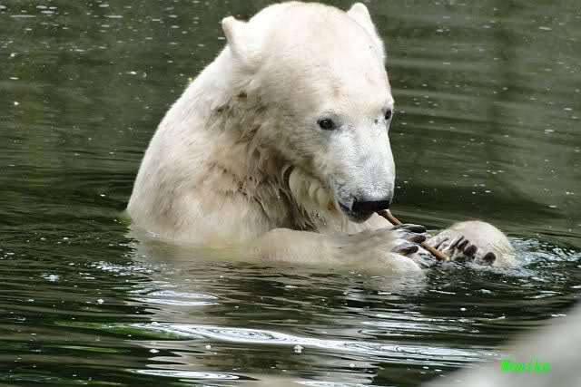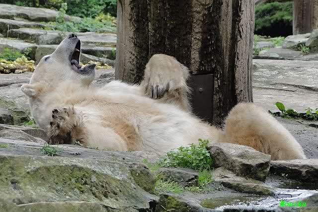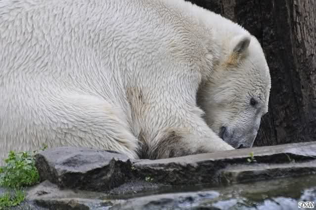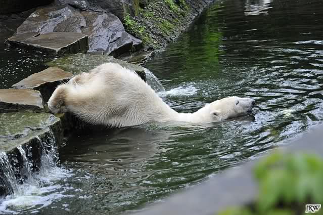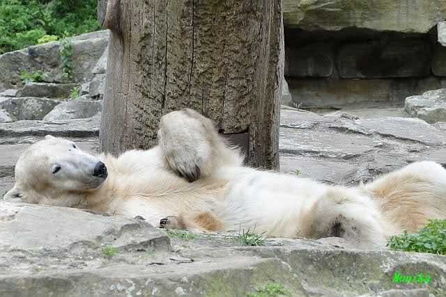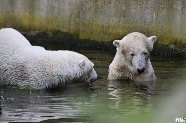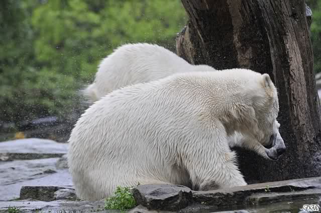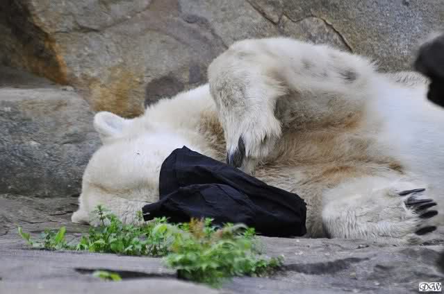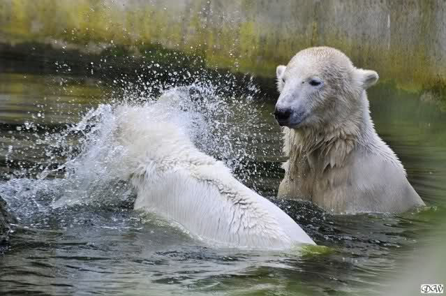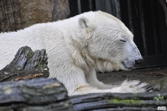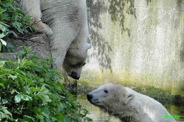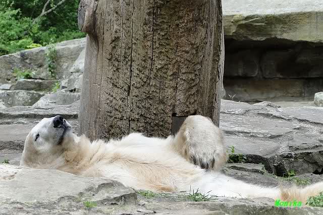 Nach der Fütterung ging es ähnlich weiter wie heute Vormittag; nur das Knut wieder die Farbe eines Eisbären angenommen hat.