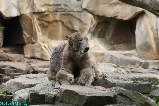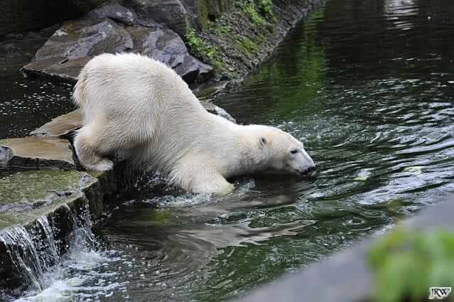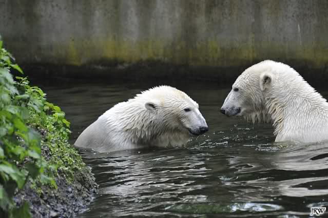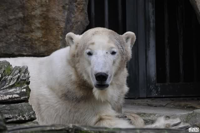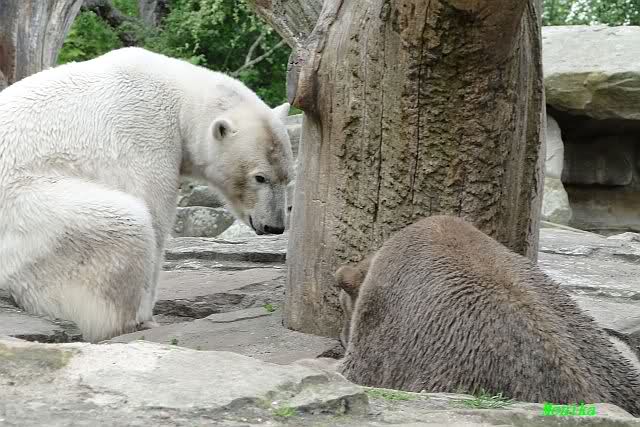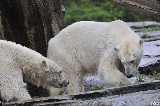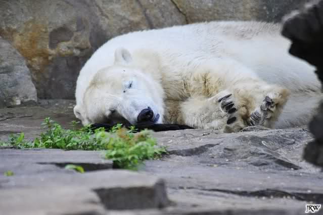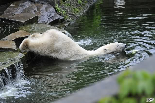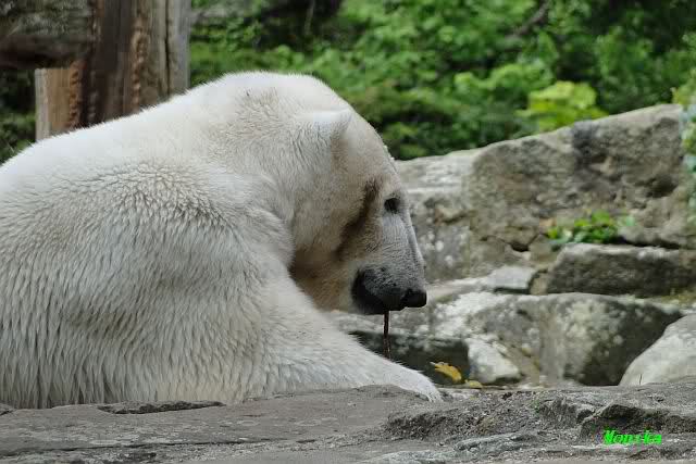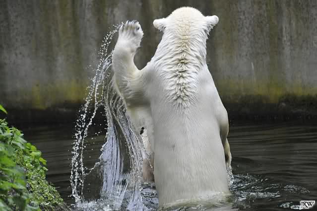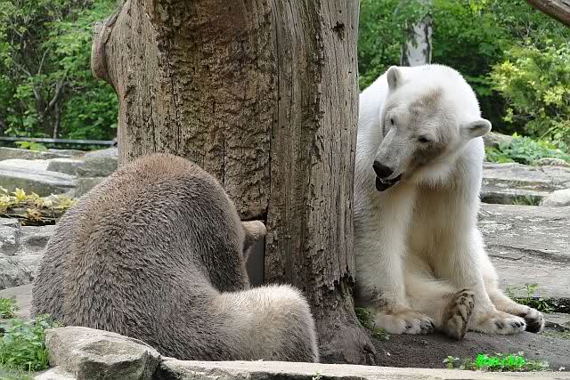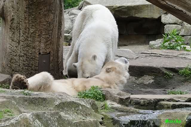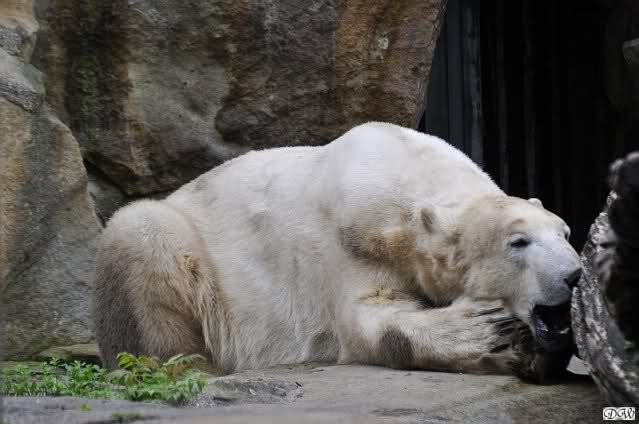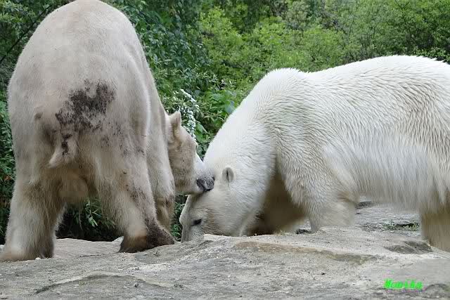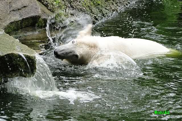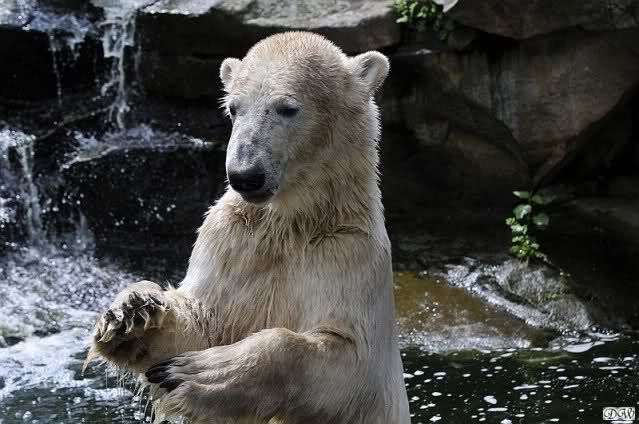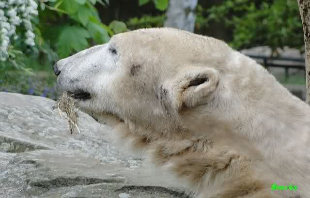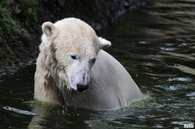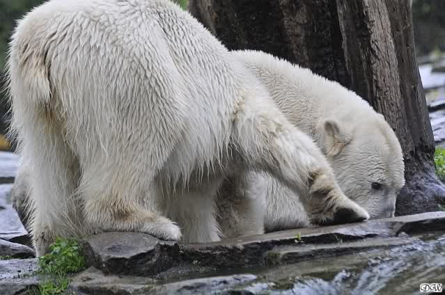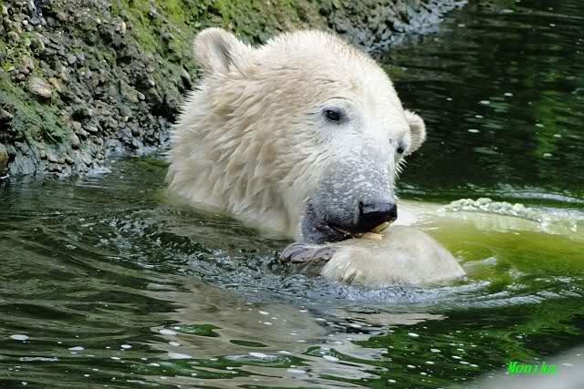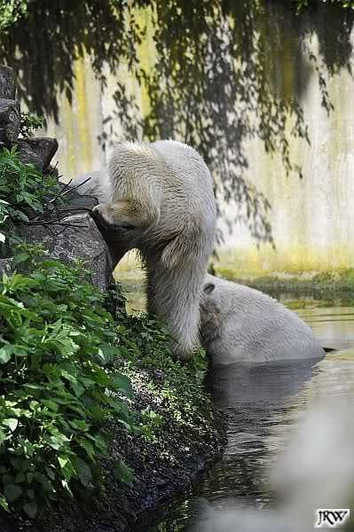 Nach der Fütterung ging es ähnlich weiter wie heute Vormittag; nur das Knut wieder die Farbe eines Eisbären angenommen hat.