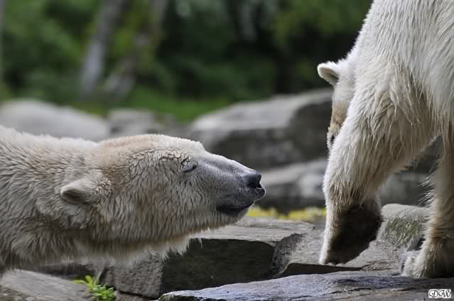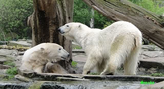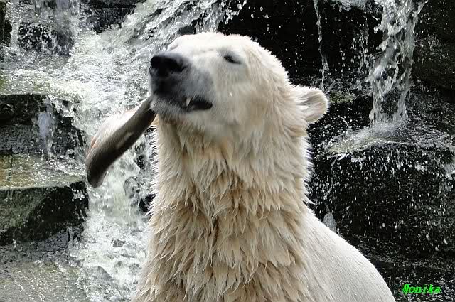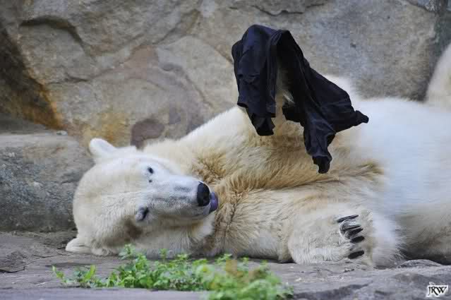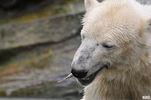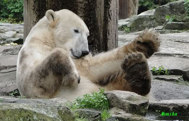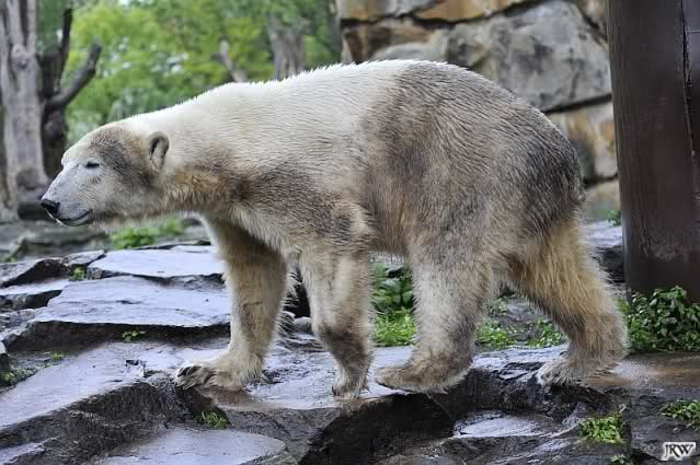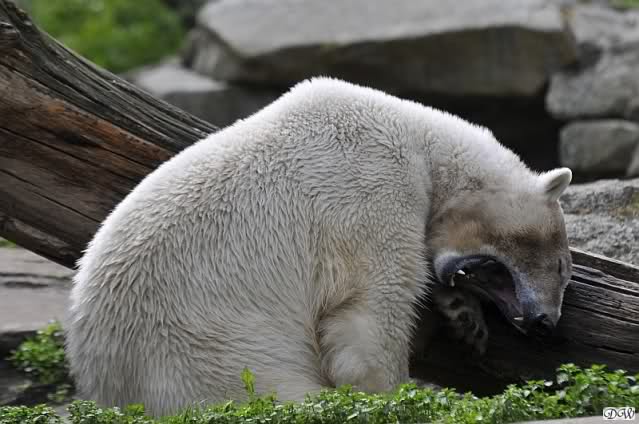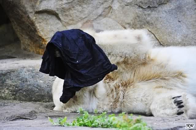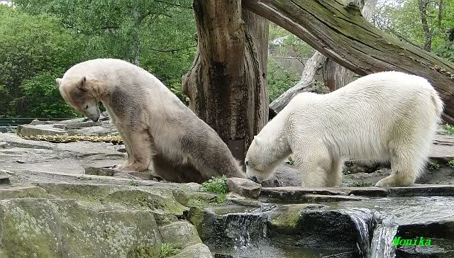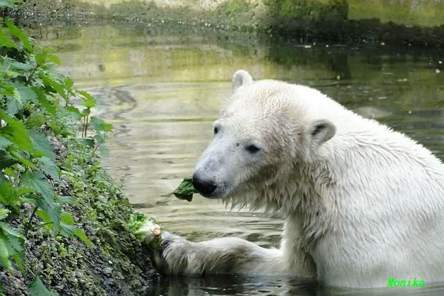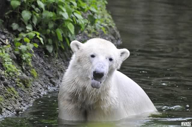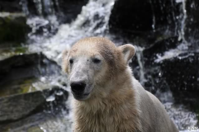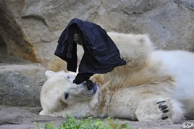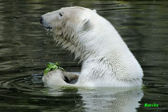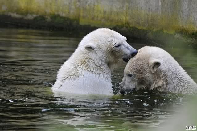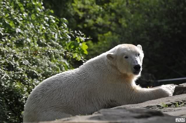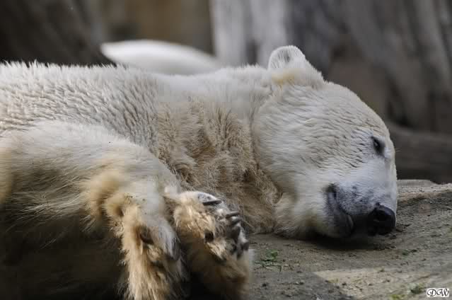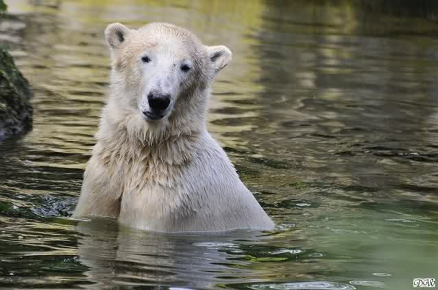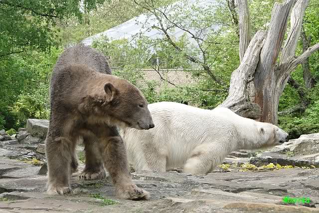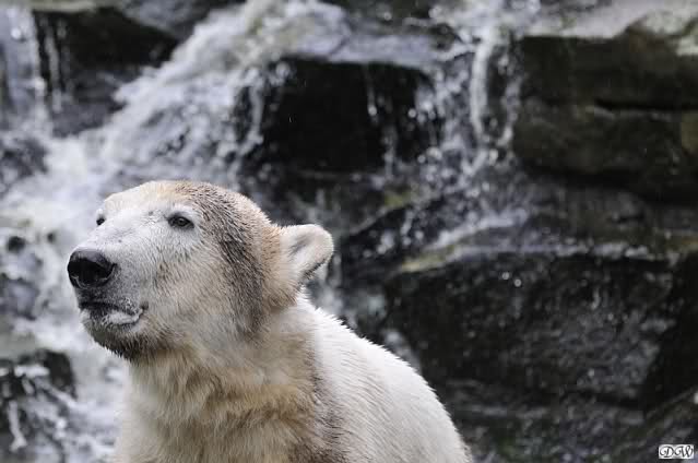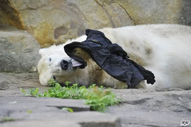 Nach der Fütterung ging es ähnlich weiter wie heute Vormittag; nur das Knut wieder die Farbe eines Eisbären angenommen hat.