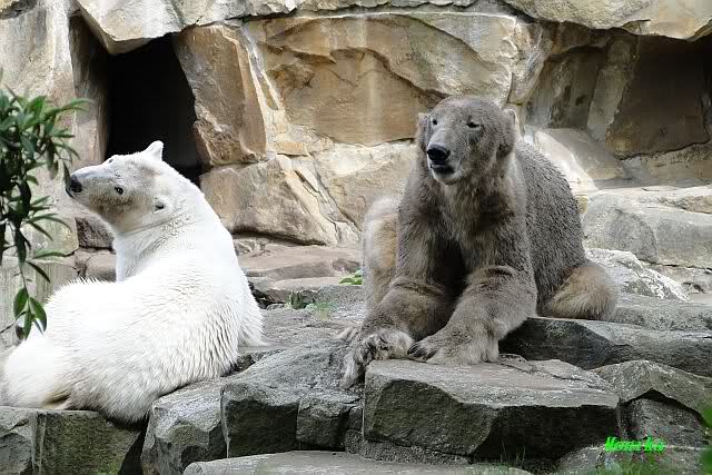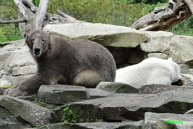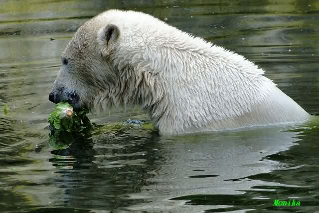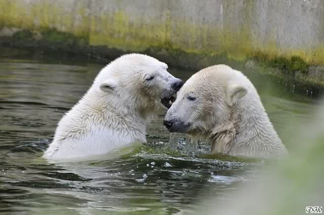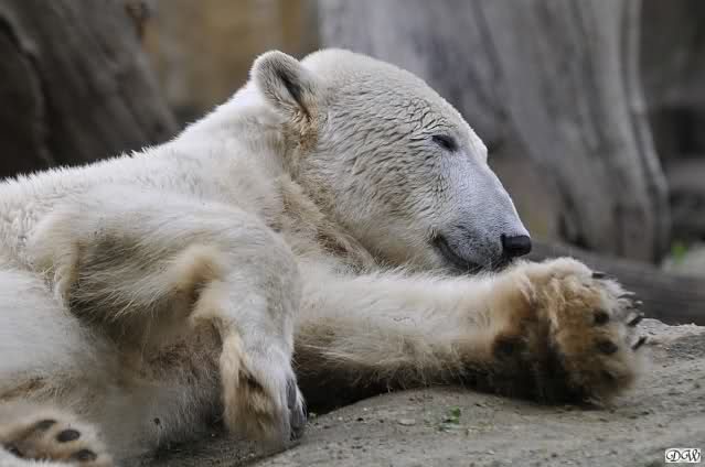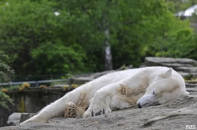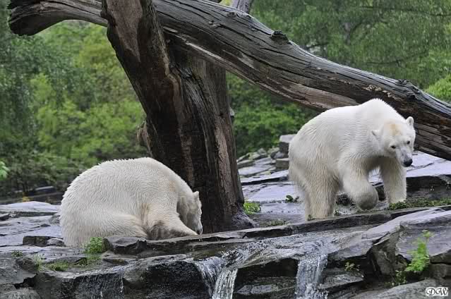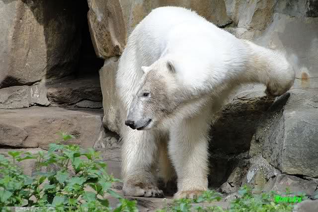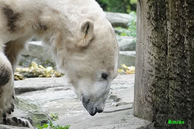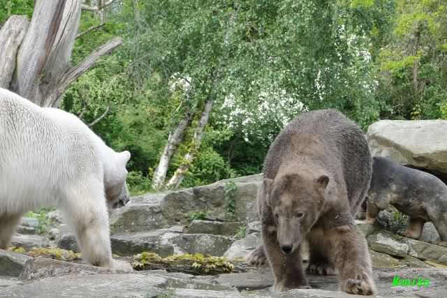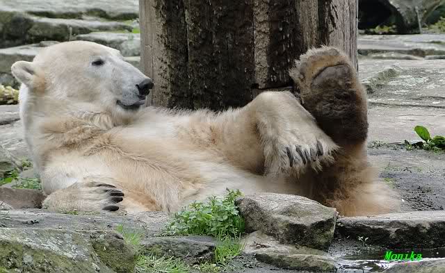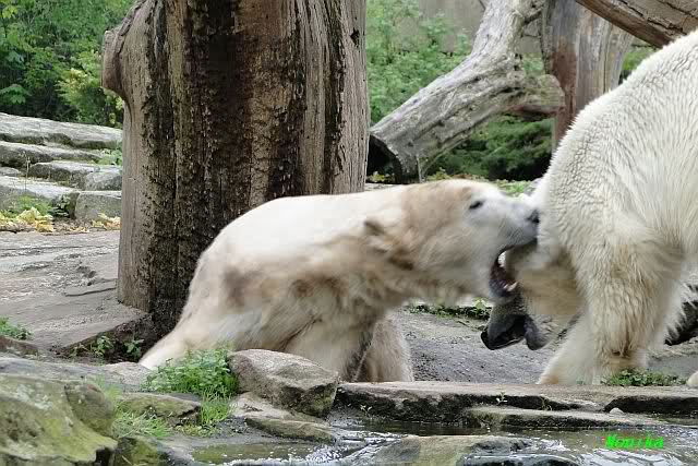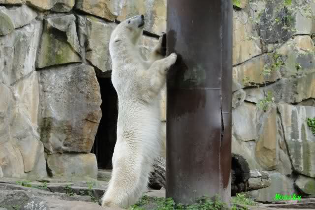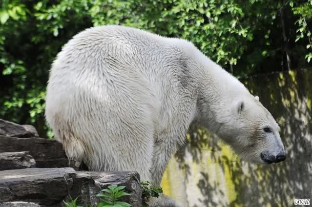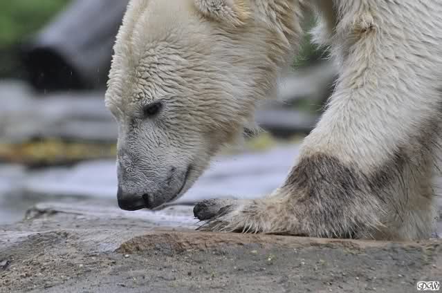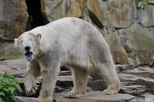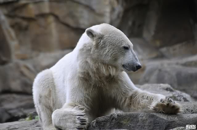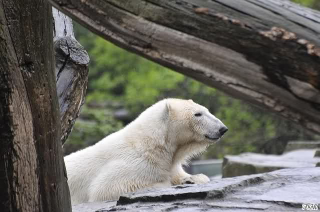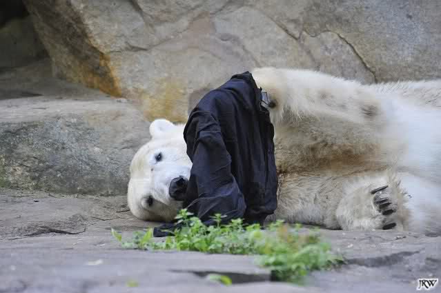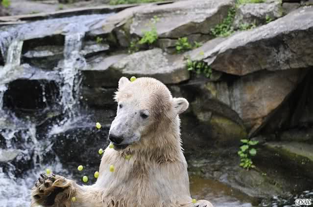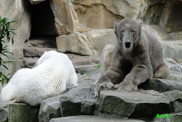 Nach der Fütterung ging es ähnlich weiter wie heute Vormittag; nur das Knut wieder die Farbe eines Eisbären angenommen hat.