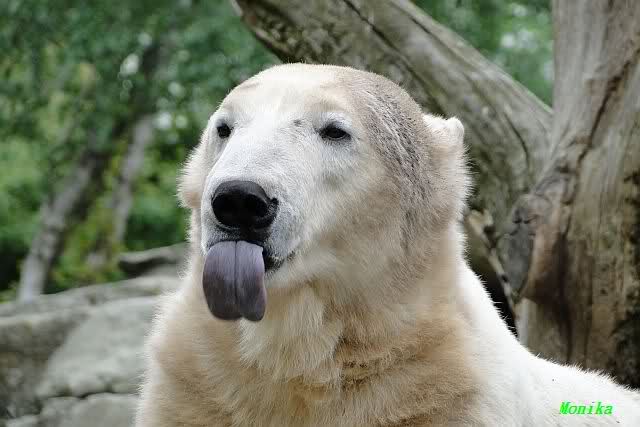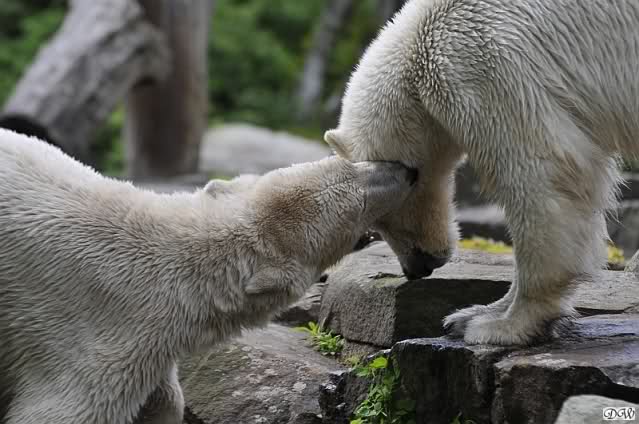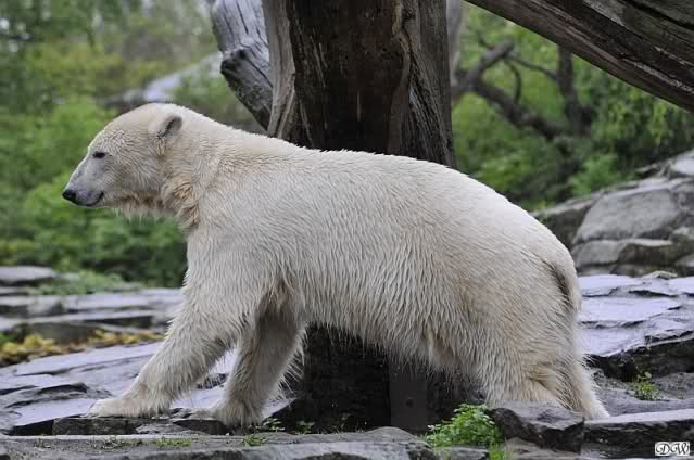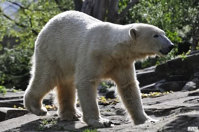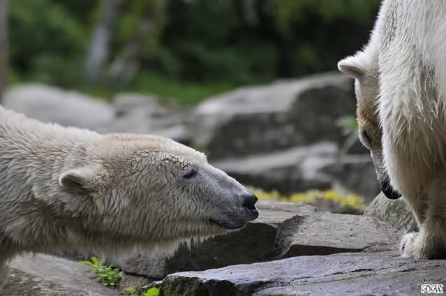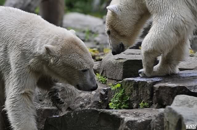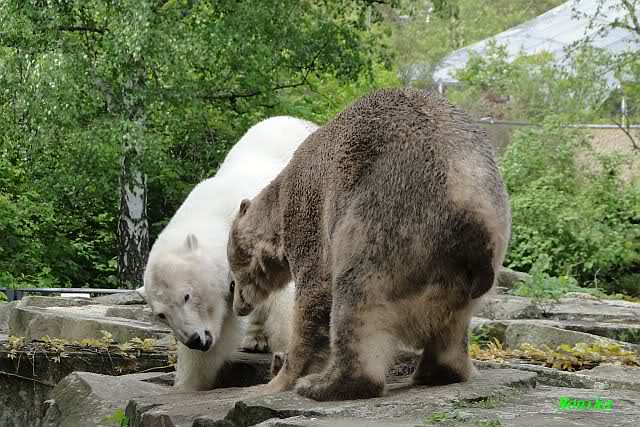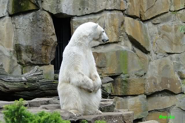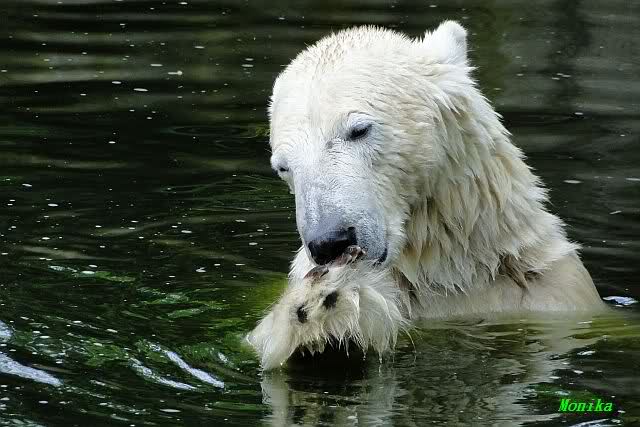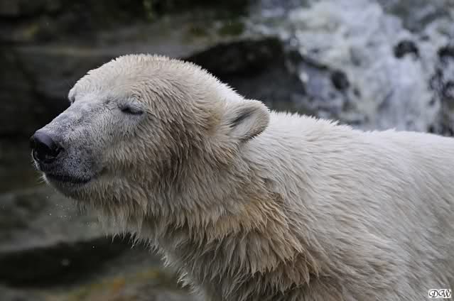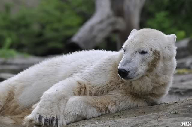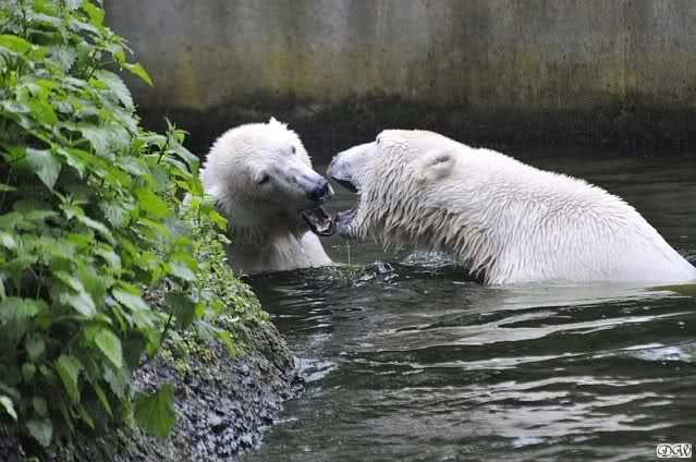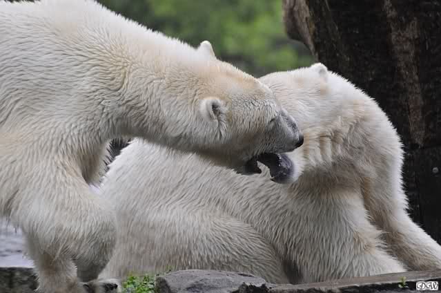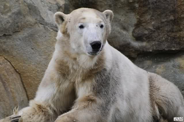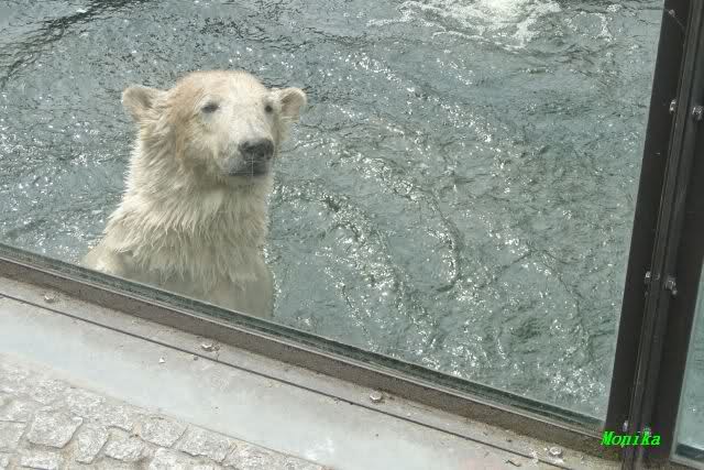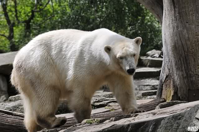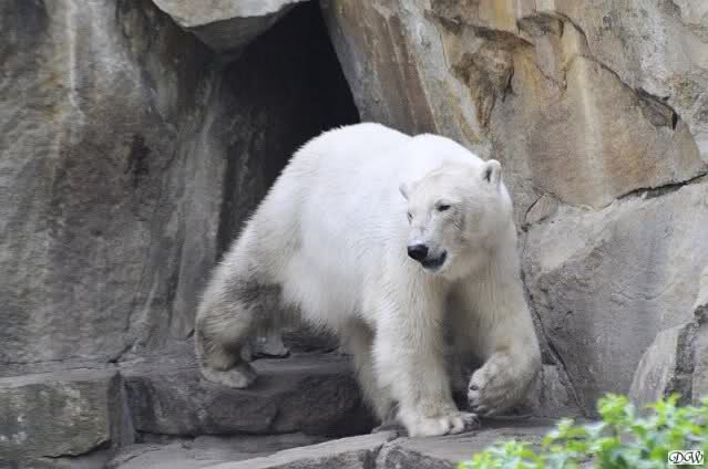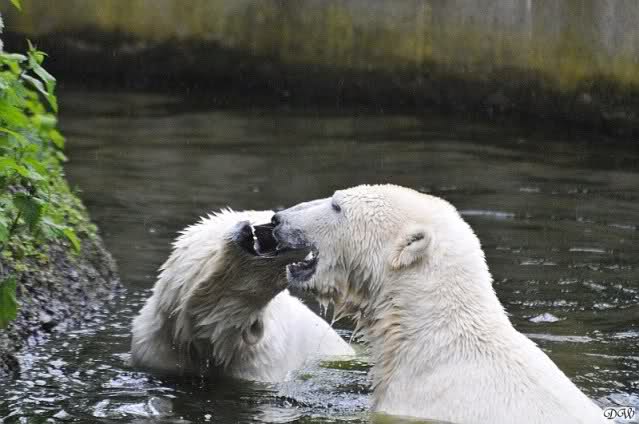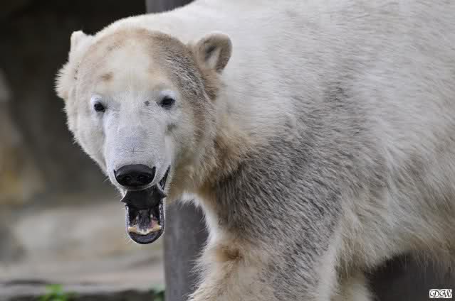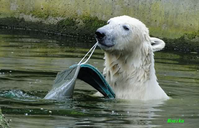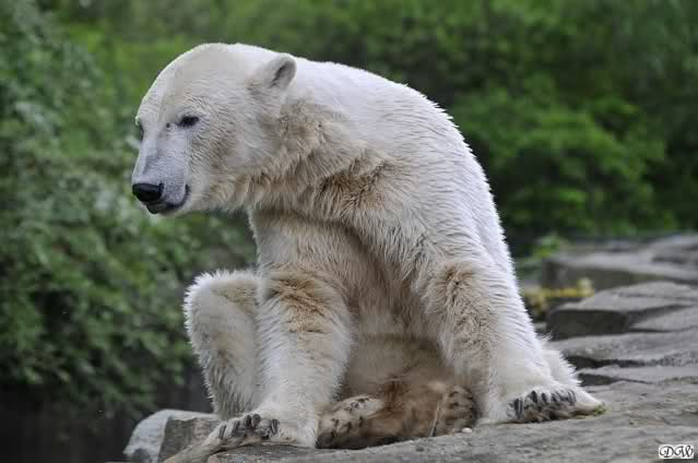 Nach der Fütterung ging es ähnlich weiter wie heute Vormittag; nur das Knut wieder die Farbe eines Eisbären angenommen hat.