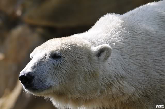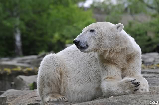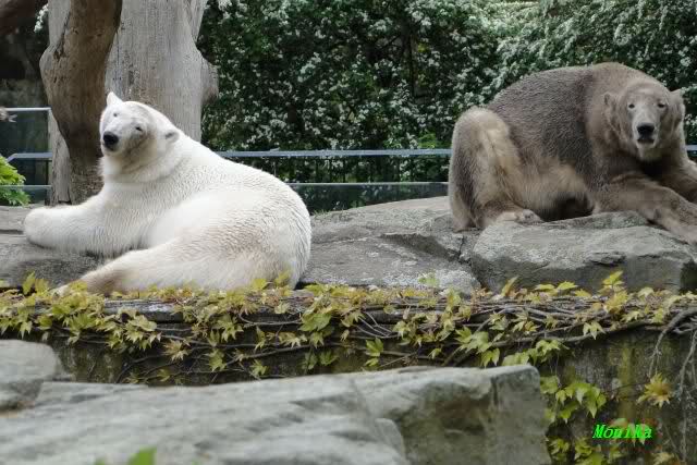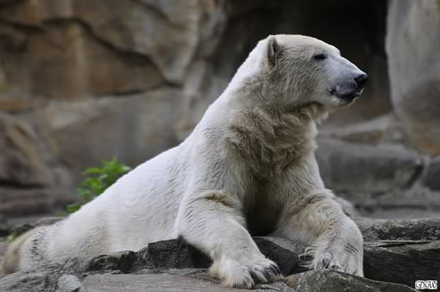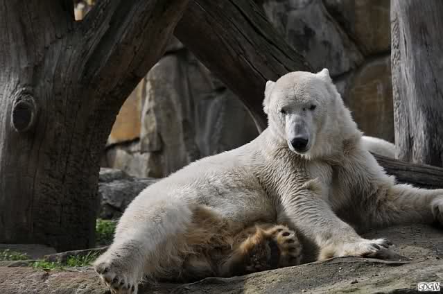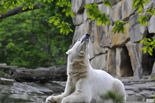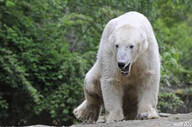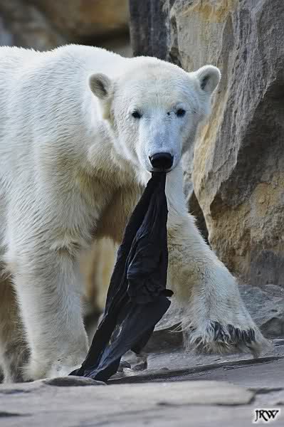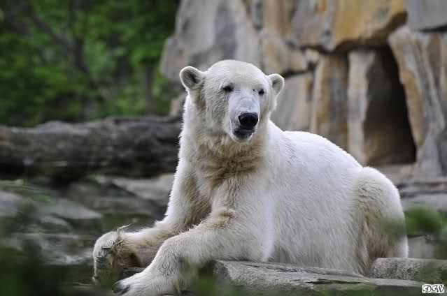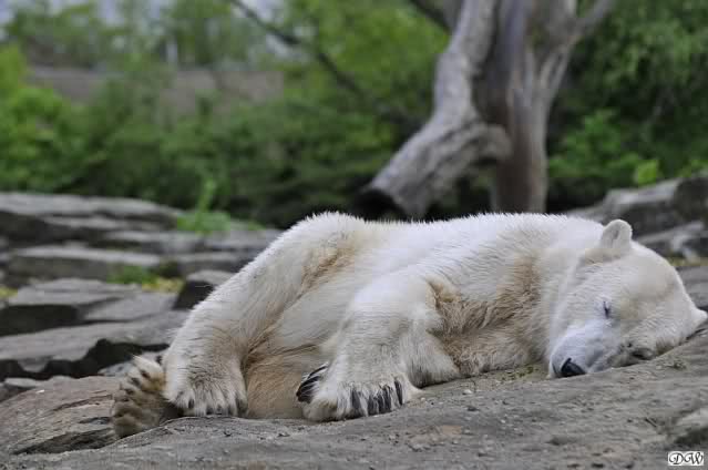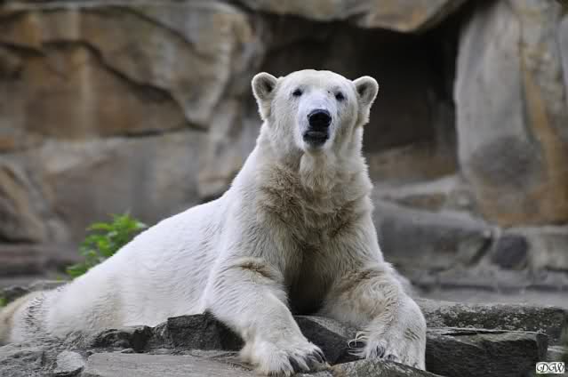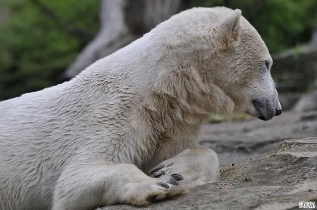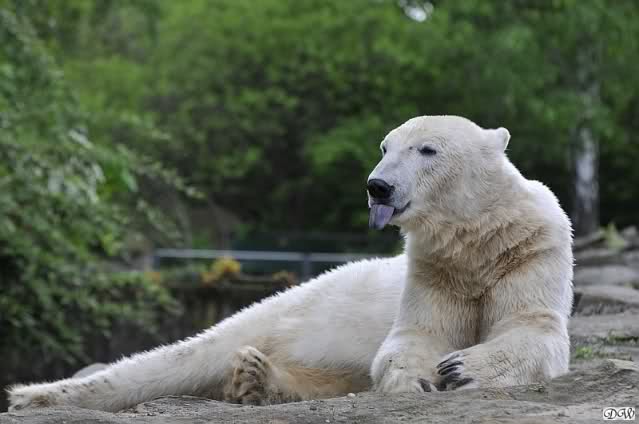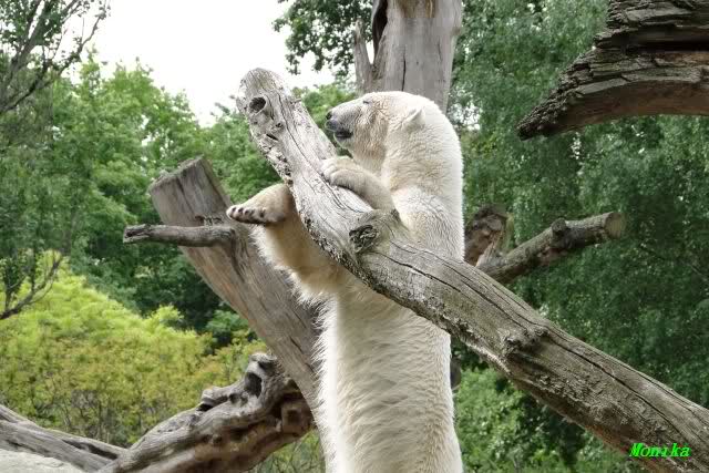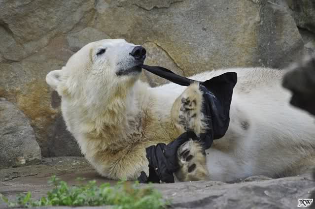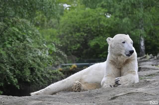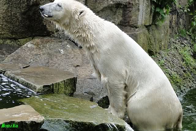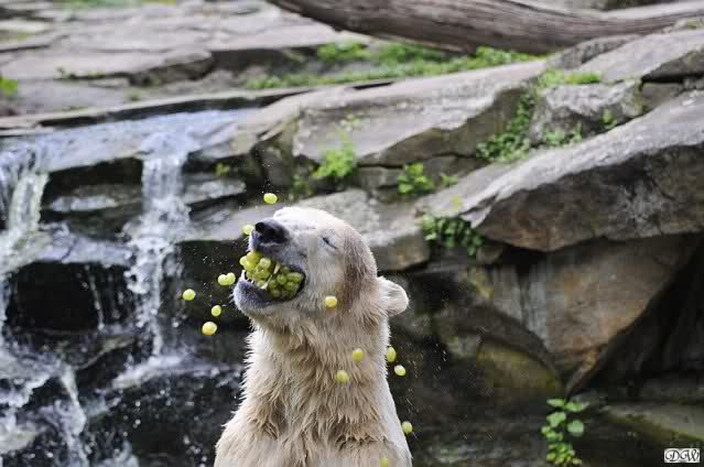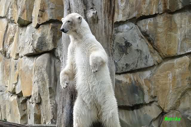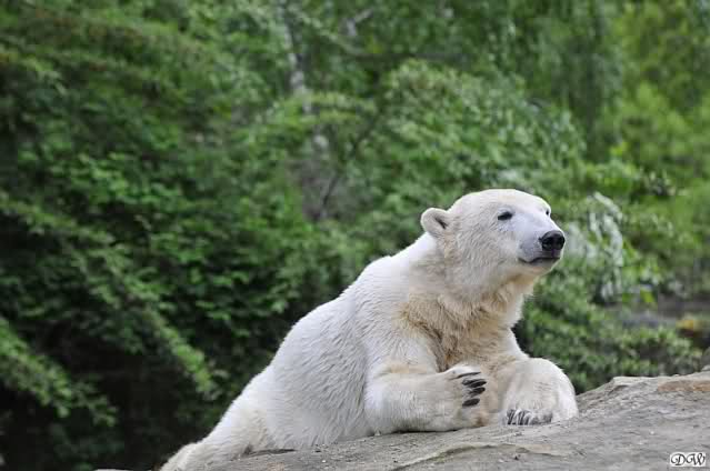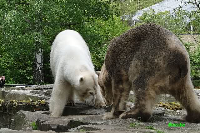 Nach der Fütterung ging es ähnlich weiter wie heute Vormittag; nur das Knut wieder die Farbe eines Eisbären angenommen hat.