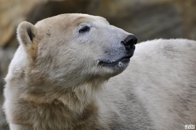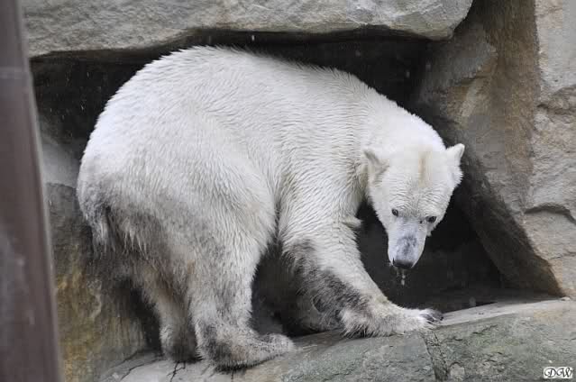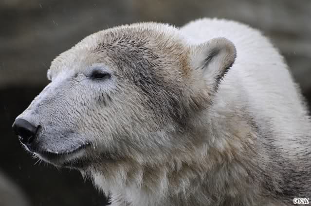 Erstaunlich war heute an einem wirklich ekligen Tag (6 Grad und Dauerregen), dass fast alle Kältefans fehlten . Eine treue Knutfreundin harrte von 09.00 Uhr morgens aus, allerdings schien auch sie nicht allzu angetan von dem Wetter heute. Sie wartete auf Schnee