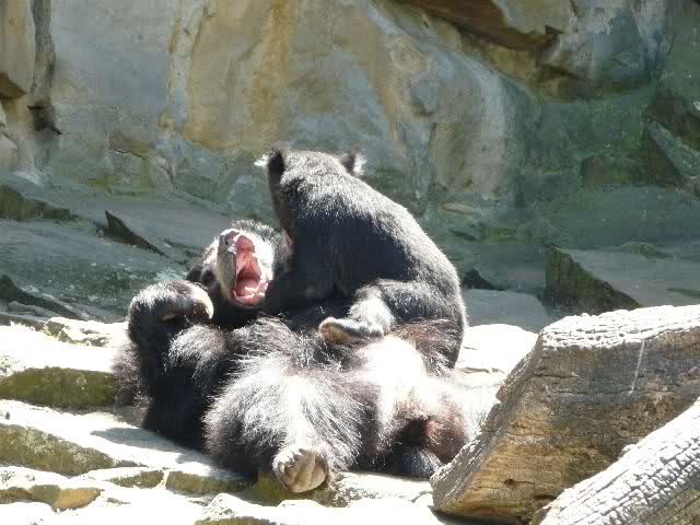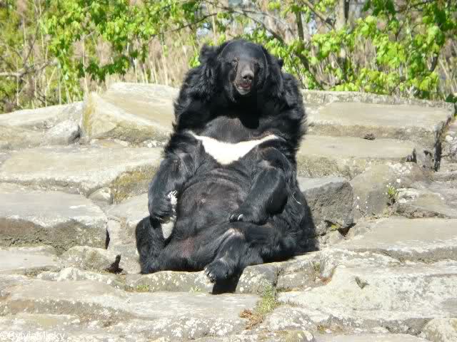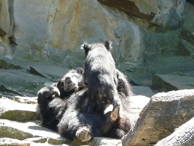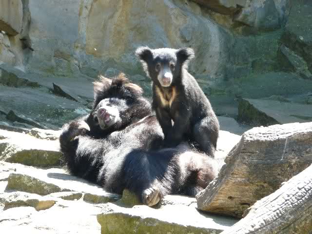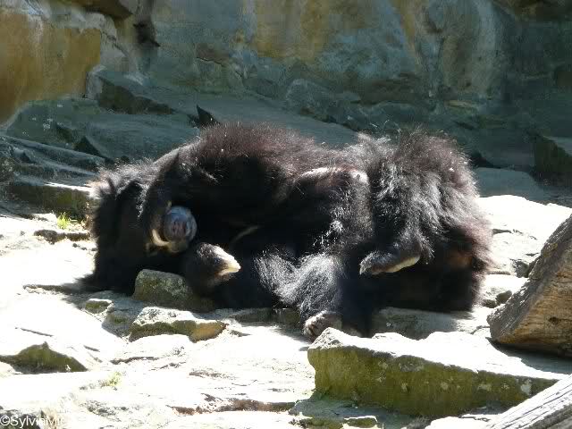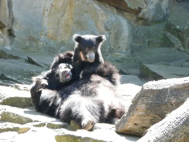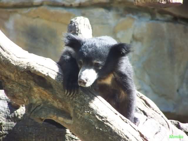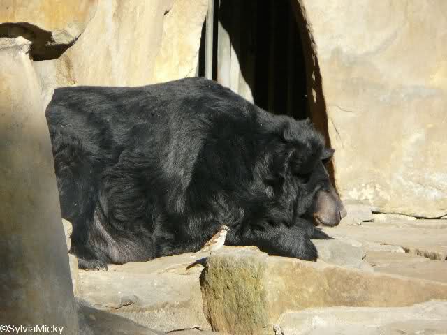 Unser Lippenbär, der sich mit den Malaienbären eine Anlage teilen muß aus Platzmangel. Die Malaien am Tag und der Lippenbär Abends und Nacht.