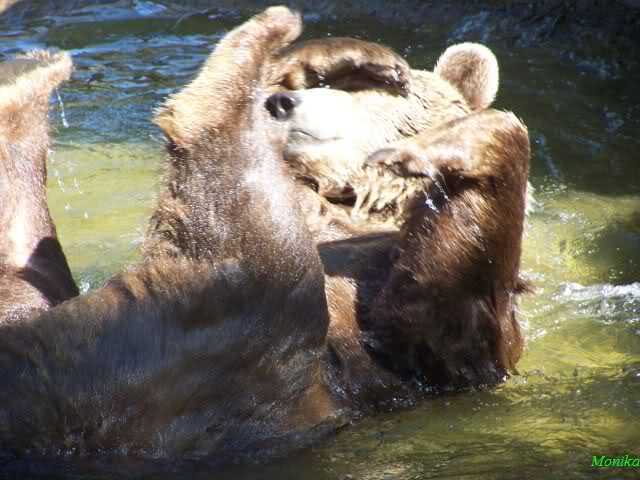 Einer der Braunbären (Siddy oder Petzi ?) genoss heute sein Bad.