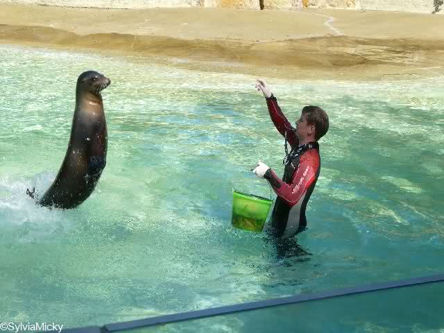 Heute fütterte ein anderer Pfleger die Robben. Er machte es sehr gut.