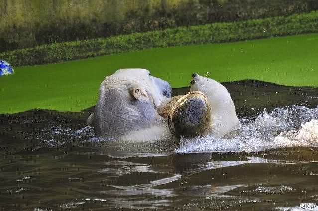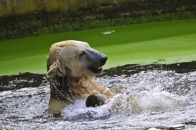 Da ich heute auf Tour war (ich erfuhr erst heute früh wo es hingeht) und nicht zu Knut konnte, freue ich mich besonders über die wieder tollen Fotos vom Bärenjungen. Es ist doch prima, das die vielen auswärtigen Besucher einen ausgelassen spielenden Eisbärjungen sehen konnten.