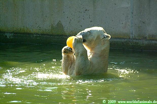 "Eisbären spielen nicht", diese Behauptung, die man vereinzelt liest und hört, wirkte heute wie ein billiger Witz. Die Bären bewiesen genau das Gegenteil . Es ist so einfach, den Zootieren ein wenig Abwechslung zu bieten.