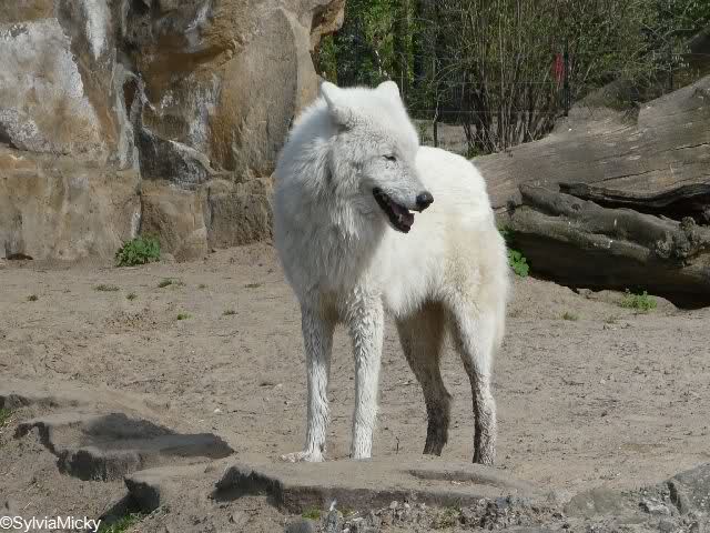 Ein Wolf auf dem Braunbärengehege. Die Wölfe wurden heute von Siddy ganz schön übers Gelände gejagt.