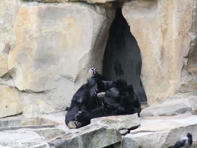 Dann gingen wir zu Devi und Sutra. Leider gab es da nicht sehr viel zu sehen. Nur zwei schwarze, puschelige Hinterteile. Die Köpfe steckten in der Höhle.