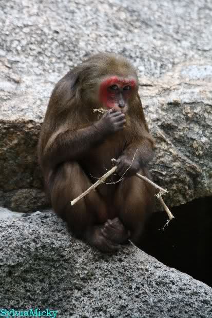 Jedes Mal wenn ich bei den Makaken vorbei gehe, laufen sie im Graben und sammeln welke Blätter