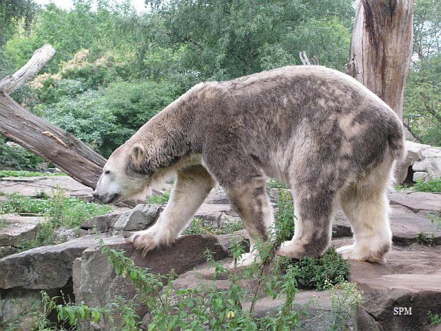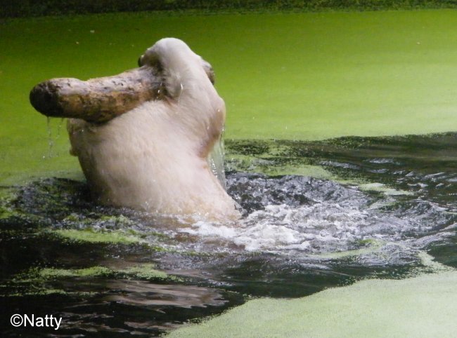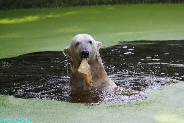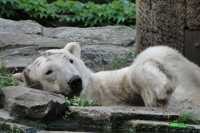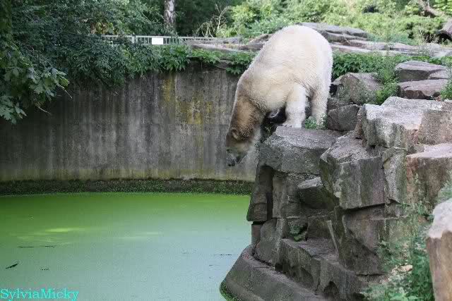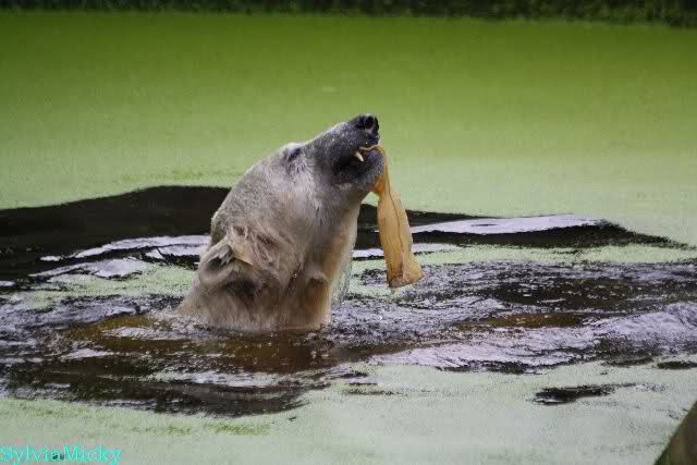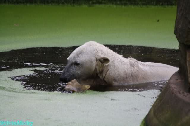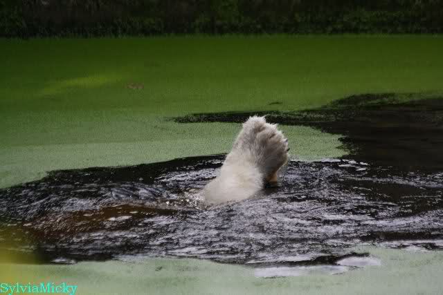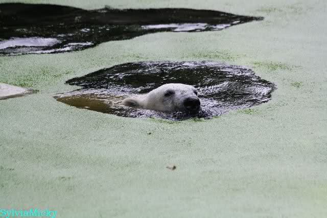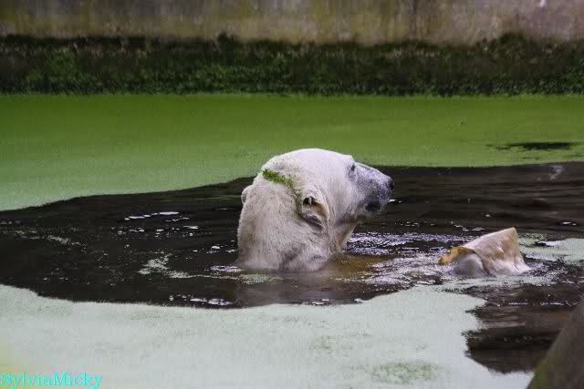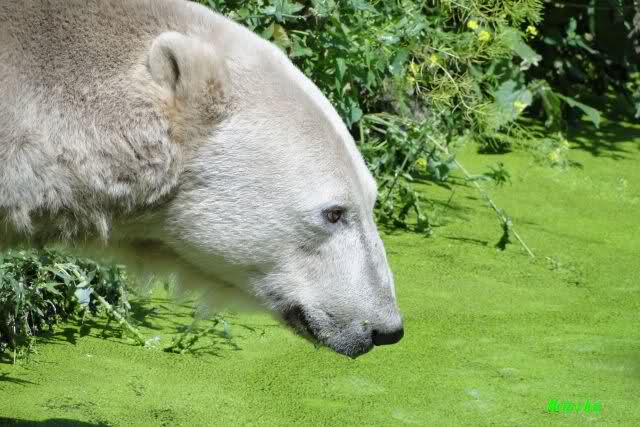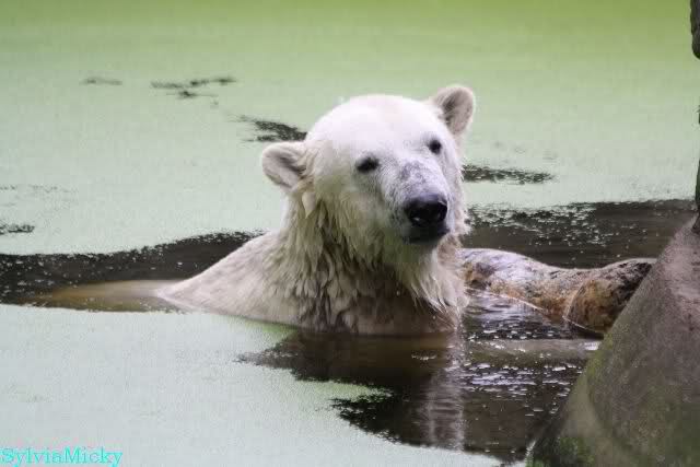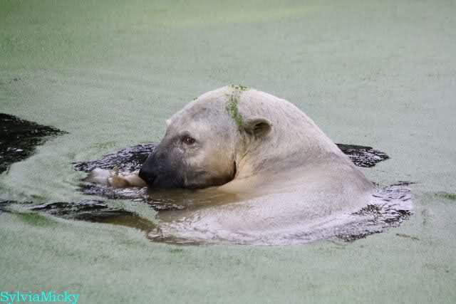 Mich machte gestern auch traurig, als ich vor Knut`s Gehege stand und die Dreckbrühe sah. Gut, die Entengrütze soll ja nicht schädlich sein, aber wenn man bedenkt, dass die letzte komplette Erneuerung des Wassers Ende März 2010 war, kommt mir das Grausen - nicht nur die Fäkalien werden ins Wasser gespült, auch das Fleisch wird bei der Fütterung ins Wasser geworfen. Mich wundert wirklich, dass hierbei nicht Krankheiten auftreten!
