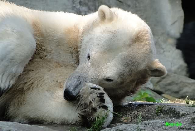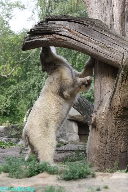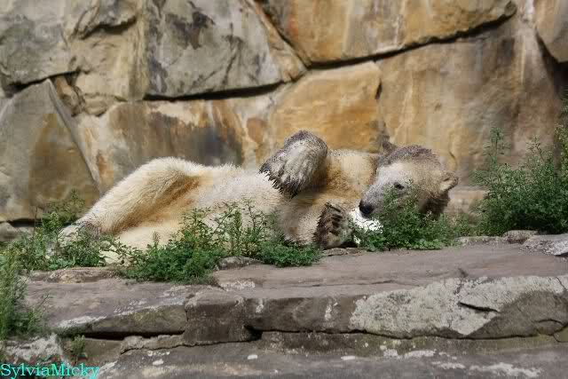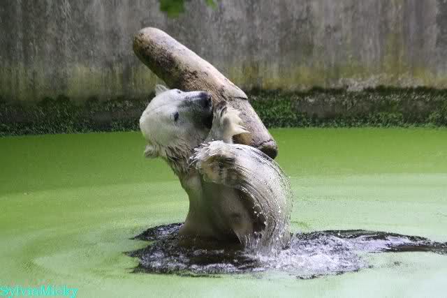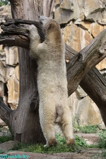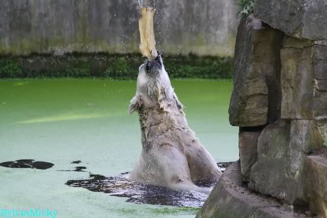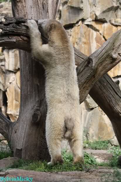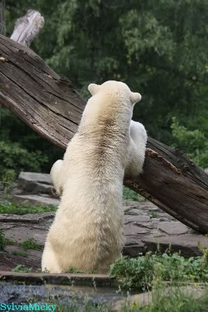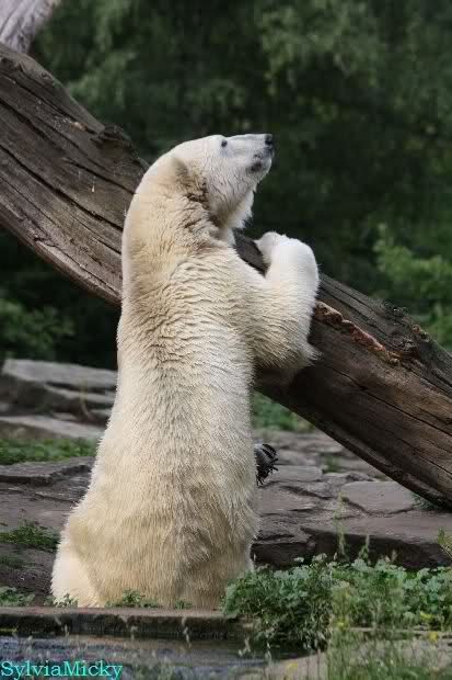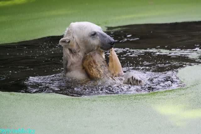 Monika, Deine Fotos von Knut bei seiner "Gartenarbeit", sind wunderschön, eines besser als das andere, da war ich leider noch nicht im Zoo. Als Knut jedoch vor der Fütterung so ausgiebig mit seinem Holzstück spielte, war ich mit dabei und wir erfreuten uns alle an dem spielenden, fröhlichen Knut. Man kann den Eisbären (und nicht nur diesen Tieren) mit so wenig Dingen eine Freude machen, es kostet nicht viel Geld, man muss nur Ideen haben und wollen.