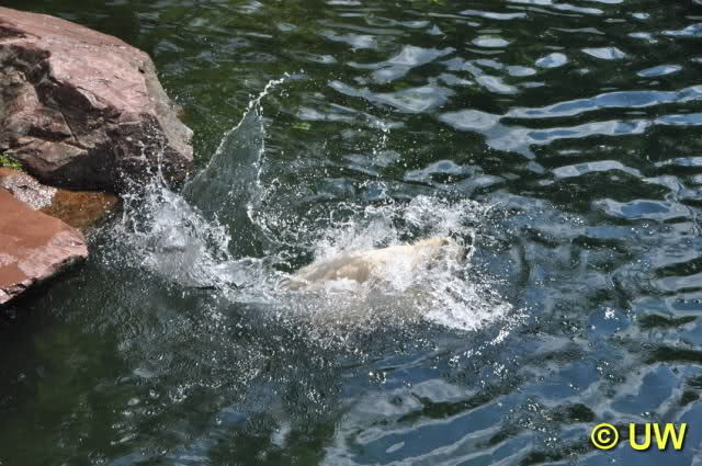 Nachdem die Eisbären noch schliefen, war ein Besuch beim syrischen Braubären angesagt. Der war gerade beim Frühstück