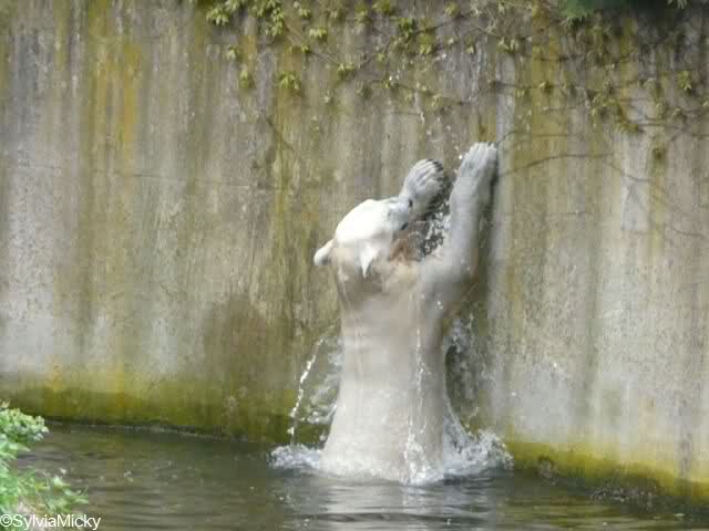 Am Nachmittag gab es wieder das volle Puderprogramm immer begleitet von Rufen neuer Besucher: das ist doch nicht Knut, das ist doch kein Eisbär