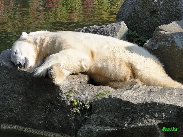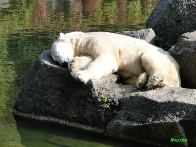 Heute früh lag Knut auf dem unteren rechten Stein und schlief.