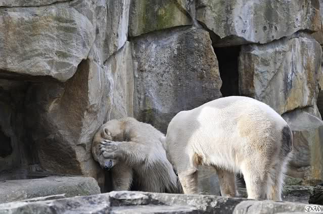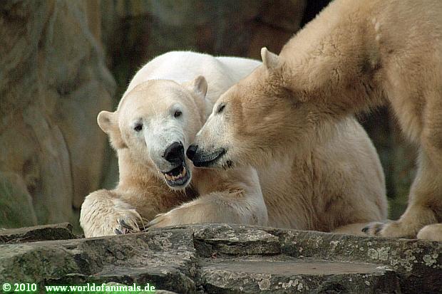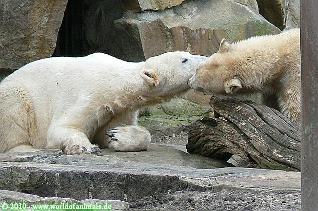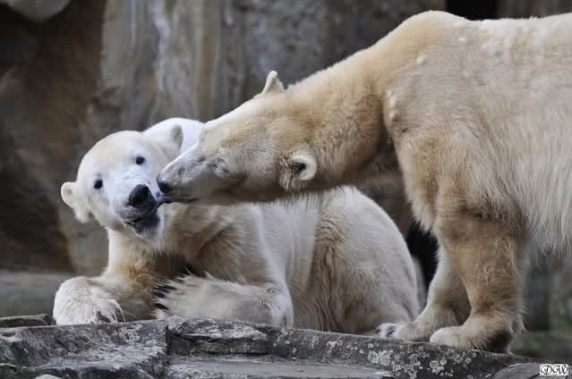 Schön, dass du wieder in den Zoo konntest und gleich ein schmusendes Eisbären-Gespann erleben durftest. Das haben sich KnuGio wohl extra für dich aufgehoben, denn in den letzten Tagen waren sie eher sparsamer mit ihren Aktivitäten und Zärtlichkeiten, aber trotzdem schön anzusehen.