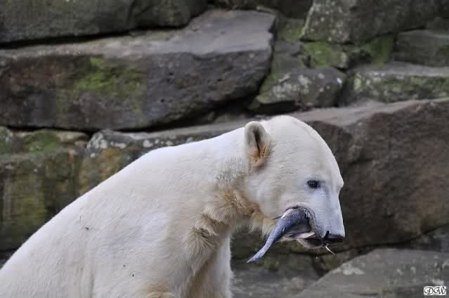 Zur Fütterung bekam Knut u.a. einen schönen Lachs von einem sehr netten Knutfreund.