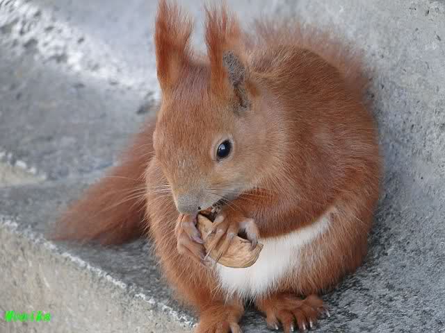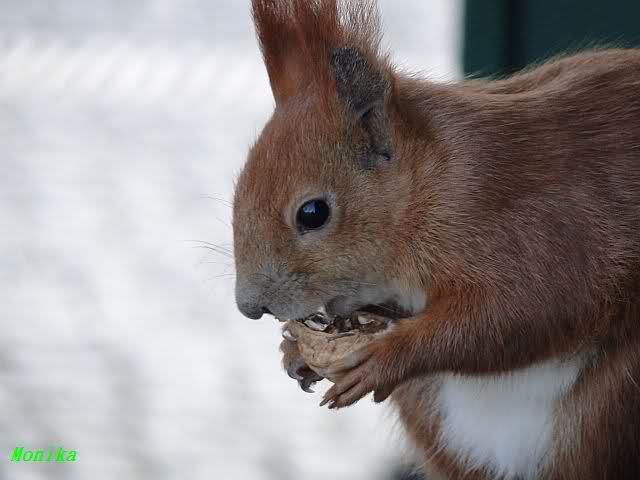 "Kalle", das kleine Eichhörnchen, das sich morgens am Kassenhäuschen sein Frühstück holt.