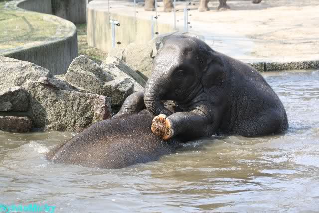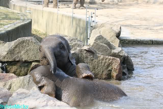 Die badende Elefanten sind klasse. Leider immer wenn wir kommen ist kalt.
