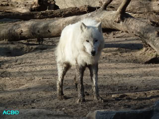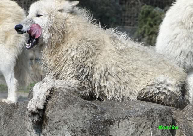 So sah die Wunde heute aus. Sieht zwar immer noch schlimm aus, aber der Wolf scheint aber keine Schmerzen zu haben. Er tollte mit den anderen zusammen, sühlte sich im Sand und war auch im Wasser.