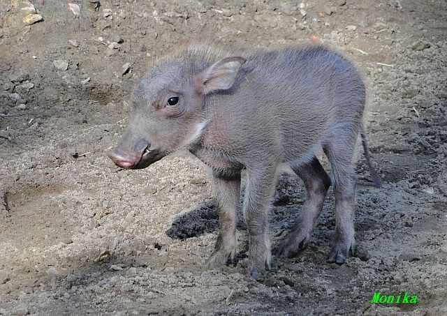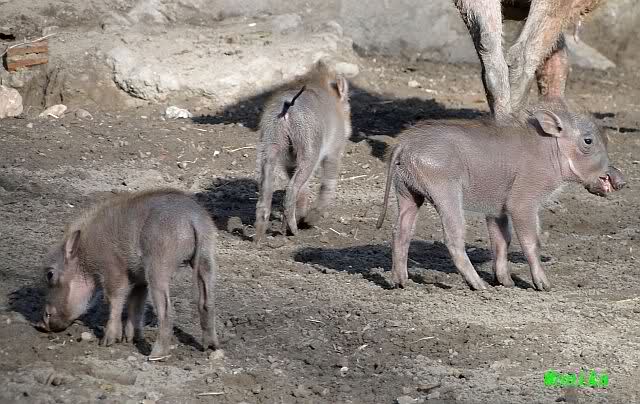 Die drei kleinen Warzenschweine waren schon früh auf der Anlage.