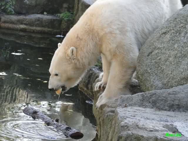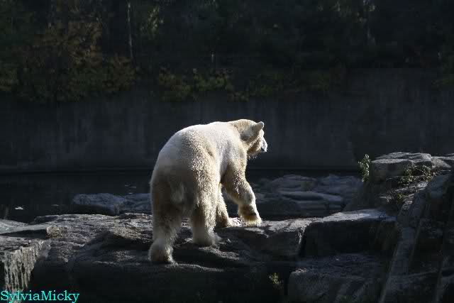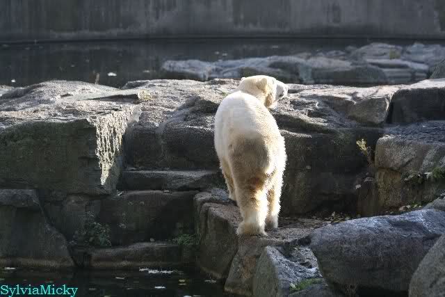 Da zog es Knut vor, weiter nach hinten zu gehen. Der Pfleger mußte mit dem Eimer hinterher (natürlich vor dem Gehege).