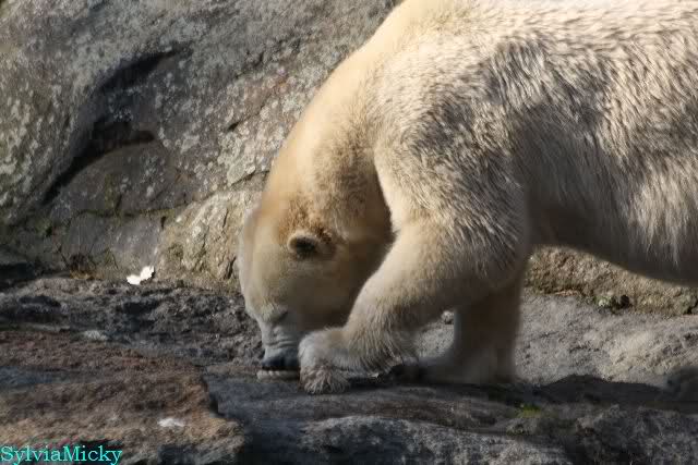 Dann kann ich aber gleich Jessie und Uli für die Fotos danken, die Felsen sind bsonders farbig heute und farbig sind auch die winzigen Beschäftigungsblätter. Knut liebt Farben und Farben tun ihm gut! Sehr schöne Fotos!